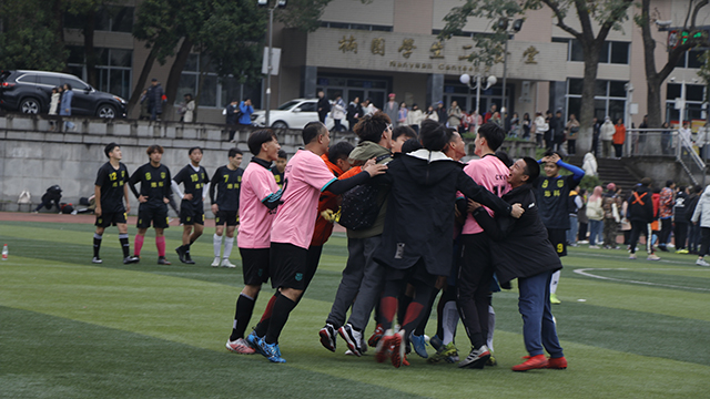学生男子足球队勇夺桂冠,实现历史性突,替补队员和观众涌入球场一同庆祝。随后,队员们带着笑容、汗水和泪水参与颁奖仪式,沉甸甸的奖牌悬挂在每位队员的胸前,这是每位队员一个多月以来辛苦付出,奋力拼搏的见证,也是对他们最好的回报。最后众人围成一圈,在队长的带领下一同举起了属于集体的第一座奖杯。本届足协杯比赛中,学院足球队在常规时间内总计共进15球,丢3球,且一直保持比分领先或持平,从未落后,夺得冠军实至名归。
