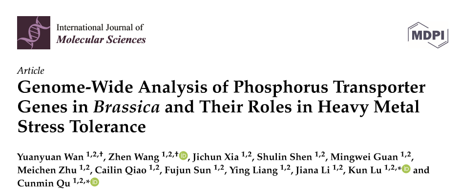 近日,学院2016级隆平实验班学生万媛媛以第一作者身份在农林领域权威期刊International Journal of Molecular Sciences(2020 Impact Factor为4.183)上发表论文《Genome-Wide Analysis of Phosphorus Transporter Genes in Brassica and Their Roles in Heavy Metal Stress Tolerance》。