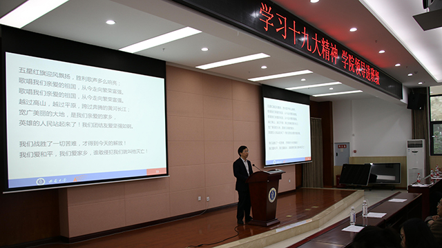 为贯彻落实党的十九大精神宣传教育,让同学们以十九大精神来鼓舞自己,农学与生物科技学院于2018330日下午两点半,在农科院大楼二楼报告厅204召开了学习十九大精神大会。大会由农学与生物科技学院党委副书记方凤玲主持,农学与生物科技学院院长何光华主讲,学院党委书记赵子华、副院长唐章林、张建奎等领导、系主任、17级辅导员和各班主任及17级全体同学参与了本次学习。