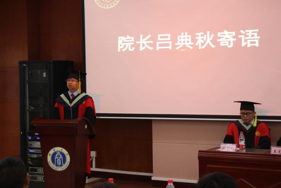 院长吕典秋教授向顺利完成学业的毕业生们送上诚挚的祝福,他鼓励同学们要奋力开启人生的新征程,把个人理想融入国家和民族的事业中,放飞青春理想。离别之际,吕院长提出了三点希望:希望同学们做心中有梦的逐梦者,以梦为马、不负韶华,在追梦求实的路上坚定不移的走下去;希望同学们做胸怀国家的奋进者,保持勇攀高峰的姿态,不甘后人,敢为人先;希望同学们做知难而进的自强者,绽放出人生的精彩,在人生舞台上惊艳saly全场!