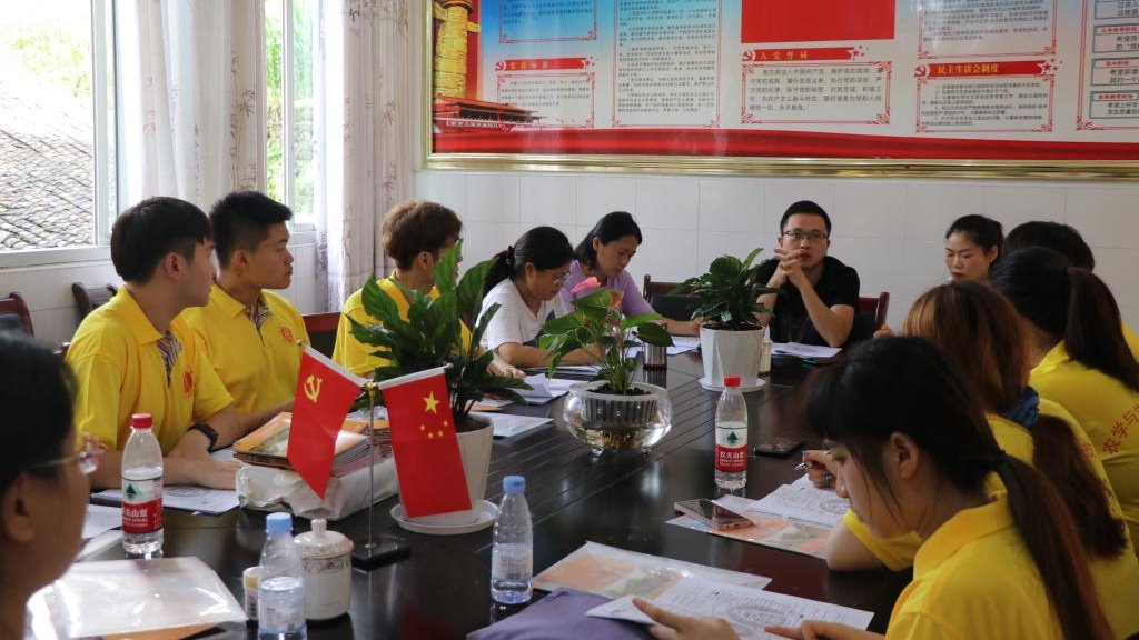 7月7日,经历近六个小时的车程,小队成员到达了此行的目的地——咸宜镇。镇党委委员、团委书记邹业伟热情欢迎实践队的到来,在短暂的休息整顿之后,实践队全体人员与邹书记开展了座谈会,对当地的基本情况和未来一周的活动开展进行详细的商讨计划。
