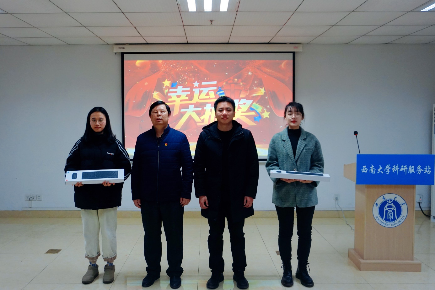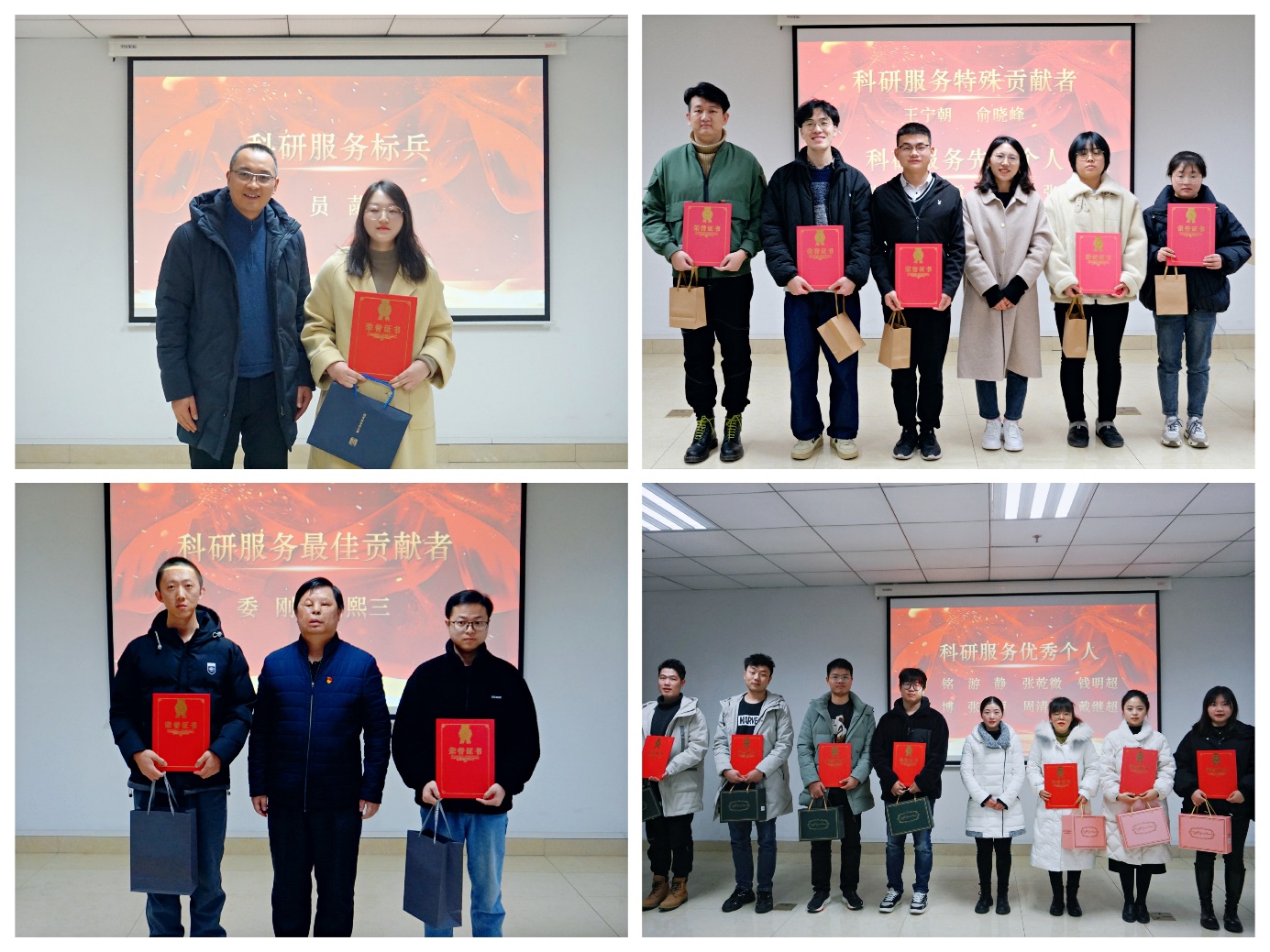 2020-2021学年度科研志愿帮扶活动“科研服务标兵”、“科研服务最佳贡献者”、“科研服务特殊贡献者”、“科研服务先进个人”以及“科研服务优秀个人”等荣誉称号获得者颁发校级荣誉证书及丰厚奖品,并合影留念。其中,员菡博士获得本次颁奖典礼最高奖项“科研服务标兵”荣誉称号,委刚、琚熙三两位同学获得“科研服务最佳贡献者”荣誉称号,王宁朝、俞晓峰两位同学获得“科研服务特殊贡献者”荣誉称号,张莹莹、杨宏霞、张帅、张媛四位同学获得“科研服务先进个人”荣誉称号,刘铭、游静、张乾微、钱明超、杨博、张秋丽、周清颖、戴继超八位同学获得“科研服务优秀个人”荣誉称号。
