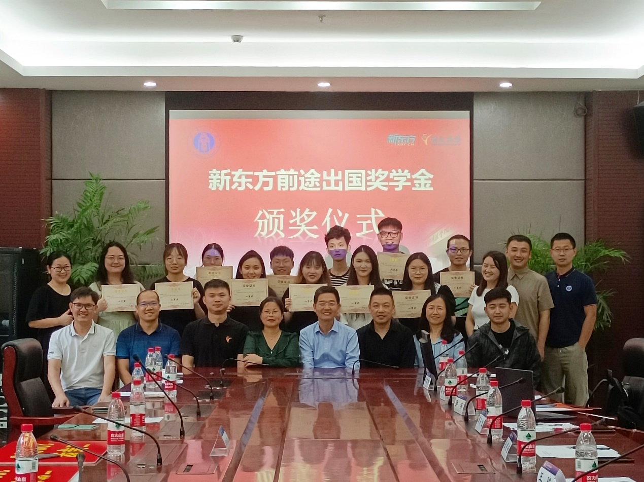 会上为学生颁发了第一届“新东方前途出国奖学金”。为了鼓励和支持植物科学与技术(中外合作办学)专业的学生积极参加海外交流学习任务,新东方前途出国公司出资9万元在成人文学