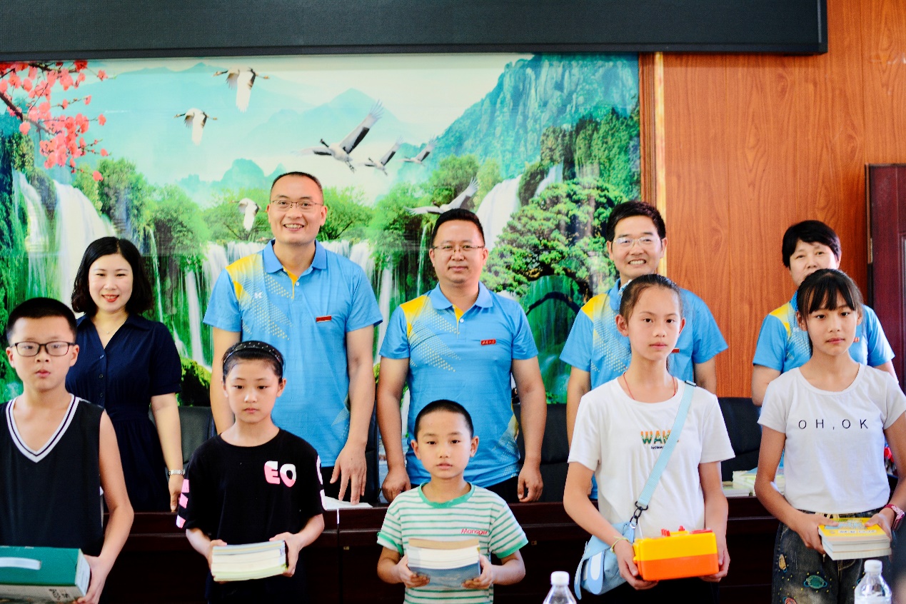 基本情况,用袁隆平精神激励孩子们要做一粒好种子,教职工捐赠价值的物质食粮和精神食粮是为了帮助小朋友们成长为栋梁之才。阳义健书记介绍了“阳光行动”计划的由来,该活动于2020年由教工第一党支部发起、润溪烟草站驻点研究生和本科生共同参与,旨在丰富山区儿童暑期生活,2022年已是活动开展的第三个年头。每年7月至8月,平均每周举办一次,可为留守儿童辅导作业、开办知识讲座、开展文体活动、进行心理辅导,深受当地小朋友和家长的欢迎。阳书记希望能在彭水当地的支持下,活动能逐年持续开展,并逐步提质扩大影响面,能像一束光,引导山区孩子健康成长。彭水县副联副主席廖凤莲和润溪乡小学学生代表向教职工志愿者表示深切而真诚的谢意。最后彭水县乡村振兴局局长高才华用自己的经历告诉孩子们:一个人的出生不能选择,但我们可以选择努力;每个人都会面临困难 ,但我们可以决意坚持;大学是人生升华的重要阶梯,成人文学