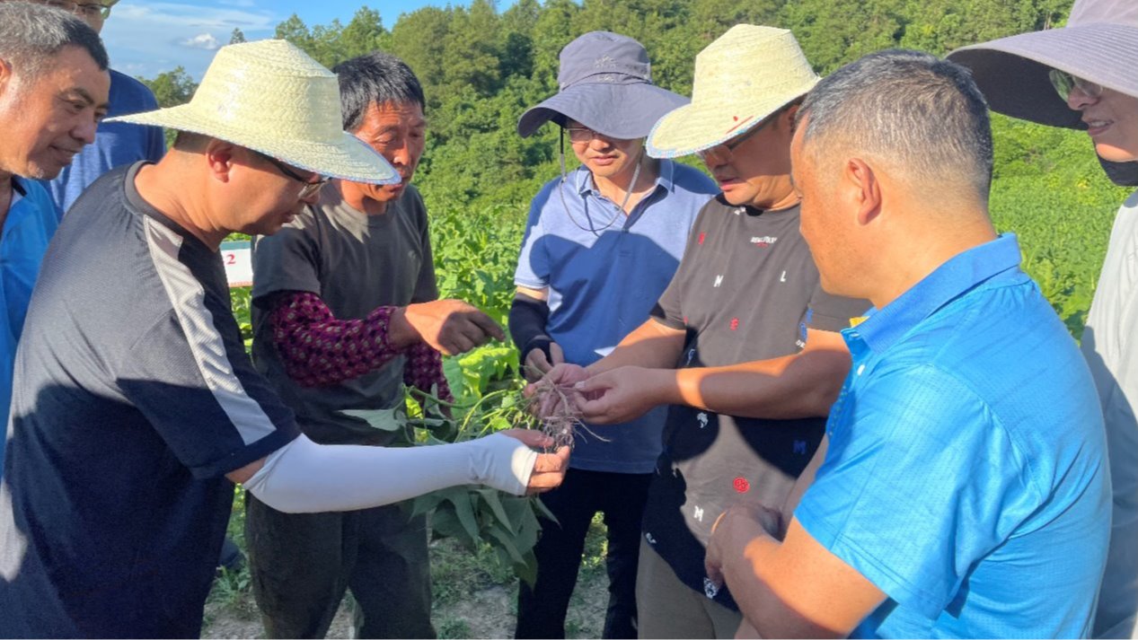 7月9日下午,志愿者服务队不顾长途跋涉,顶着烈日来到田间地头,考察彭水县粮食生产和烟叶生产现状,特别关注烟粮套作田间试验开展情况,对农户进行了实地技术指导,拿到大田生产第一手资料,为后续研讨做充足准备。