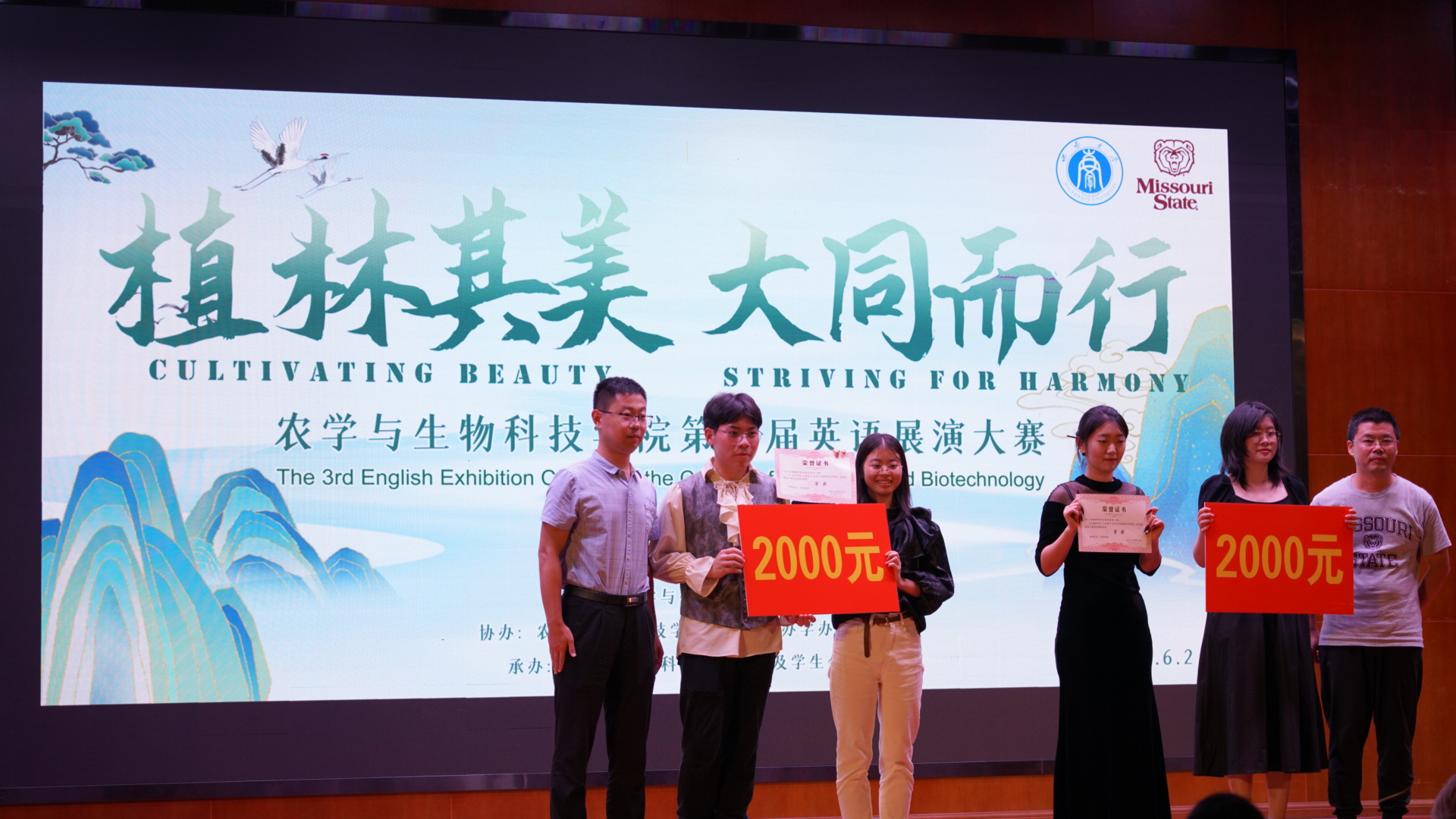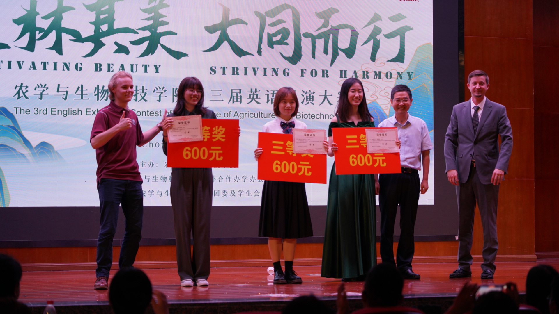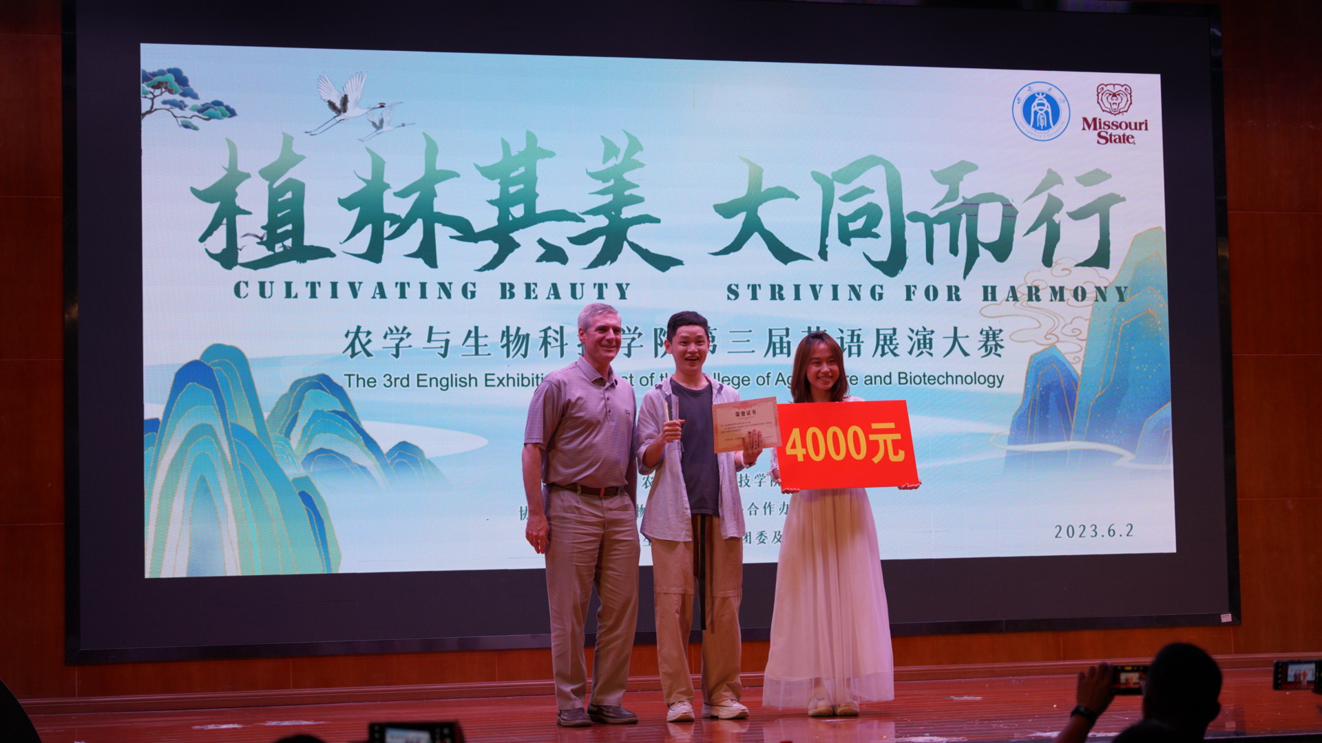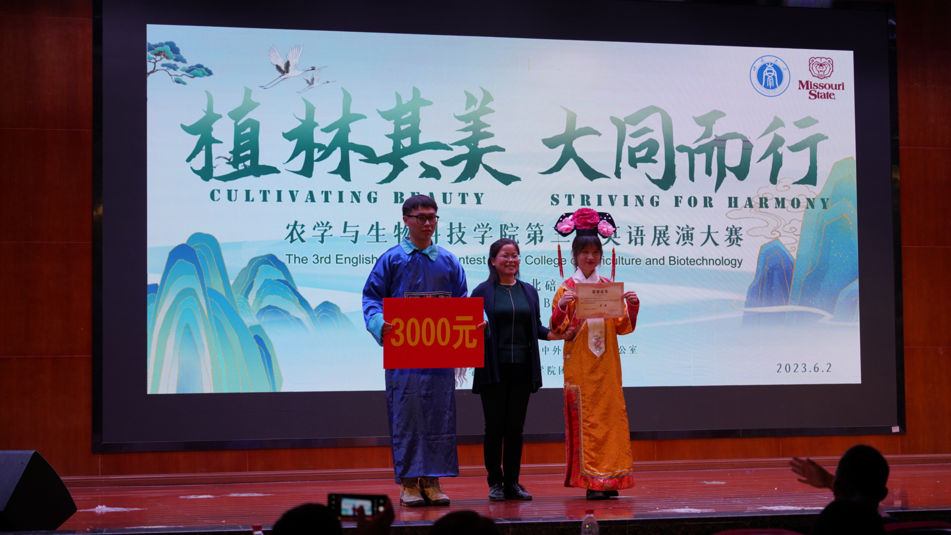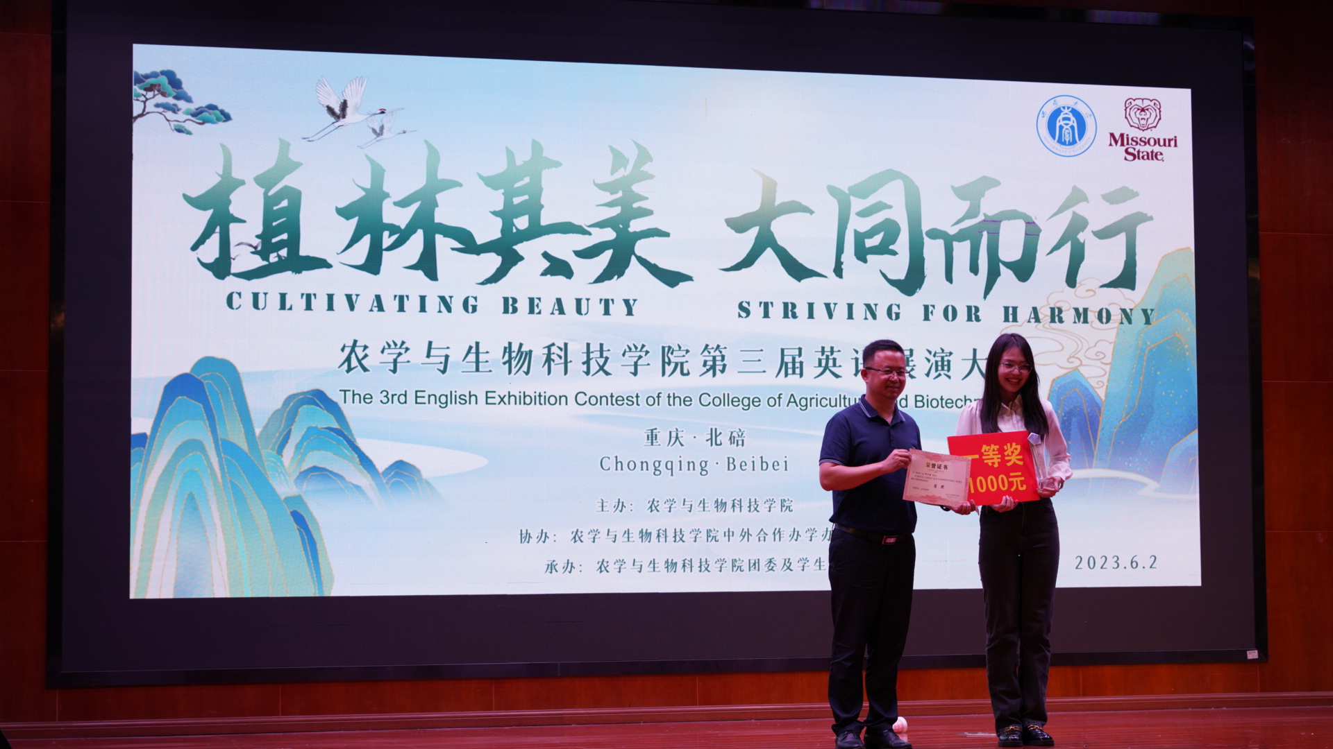 为丰富学生课余生活,推进校园文化建设,激发学生学习英语热情与创作灵感,提高学生英语水平,拓宽学生国际视野,农学与生物科技学院开展了第三届英语展演大赛,大赛以“植林其美,大同而行”为主题,共设置了个人英语演讲、班级英语舞台剧展演两个赛道,从4月14日起,经过初试、复赛,最终有四个班级、六名同学入围决赛。6月2日晚7点,学院在南区学生活动中心107举行决赛,MSU副校长Brad、中国项目办公室主任刘丹丹、驻西南大学教师Kevin及Joshua、国际合作交流处副处长胡琳,学院院长吕典秋教授应邀出席并担任评委。