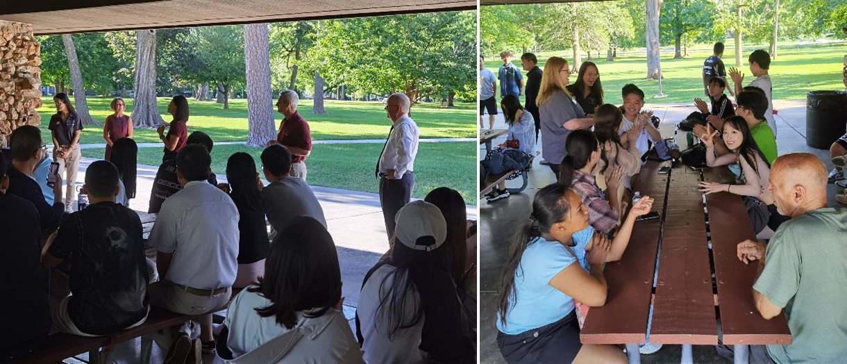 美国当地时间2023年8月9日晚,13名2020级植物科学与技术专业学生在学院中外合作办学办公室主任刘志斋的带领下,顺利抵达布兰森国际机场。密苏里州立大学(MSU)副校长Brad与山林校区校长Chin-Feng Hwang(黄晋丰)教授,率中国项目办公室和国际领导力培训中心(ILTC)的老师,一起到机场迎接。