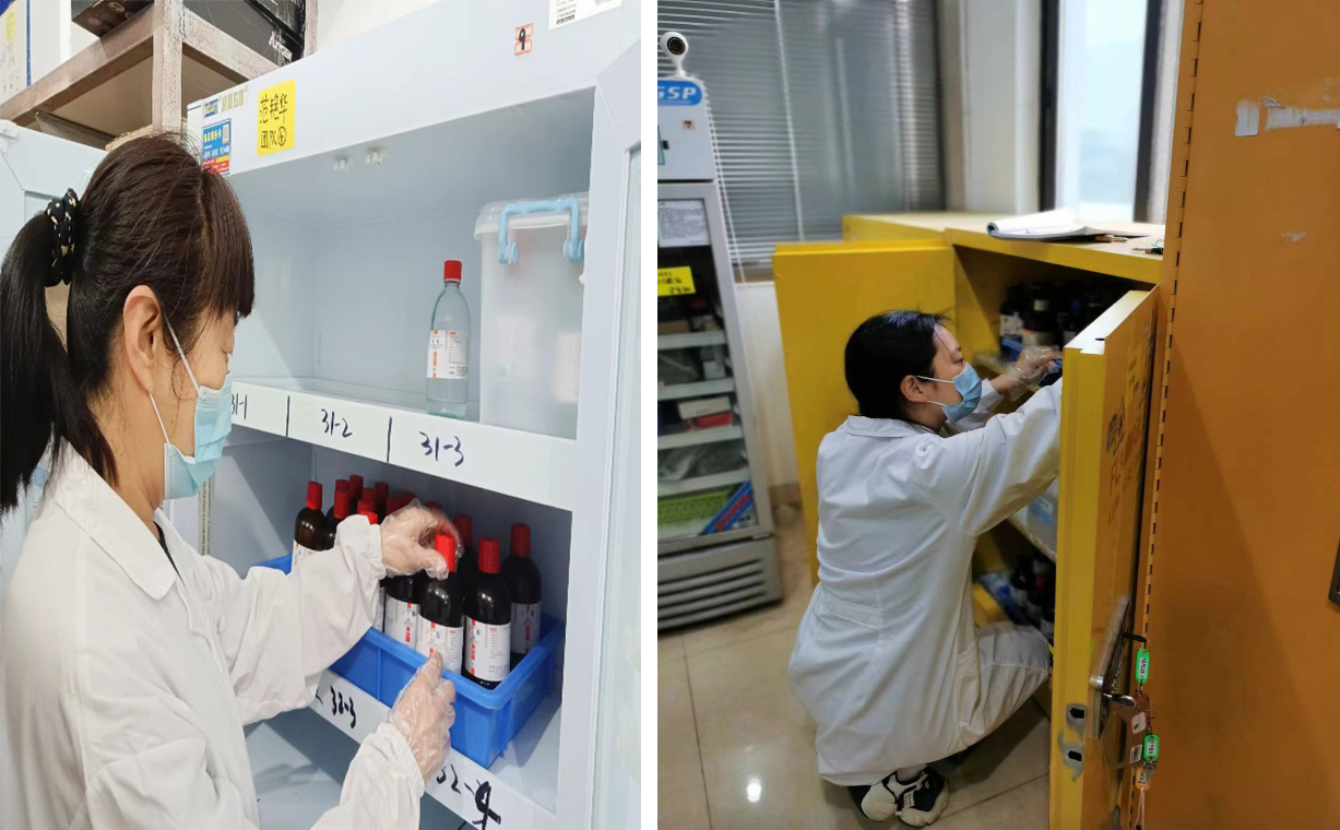另外,在危化品的购买和使用方面,学院一直秉承着“五双”(双人保管、双人领取、双人使用、双把锁、双台账)的管理要求。购买需按照学校或公安部门的要求提交相应的材料备案、入库、领用必须双人签收,双人签发、定期对危化品进行实时盘点,做到账实相符。目前,我院各团队都有专门的危化品管理老师,负责团队成员的危化品申购审核以及跟踪后续的购买、使用、回收、销毁等流程,确保危化品的全过程安全管理。