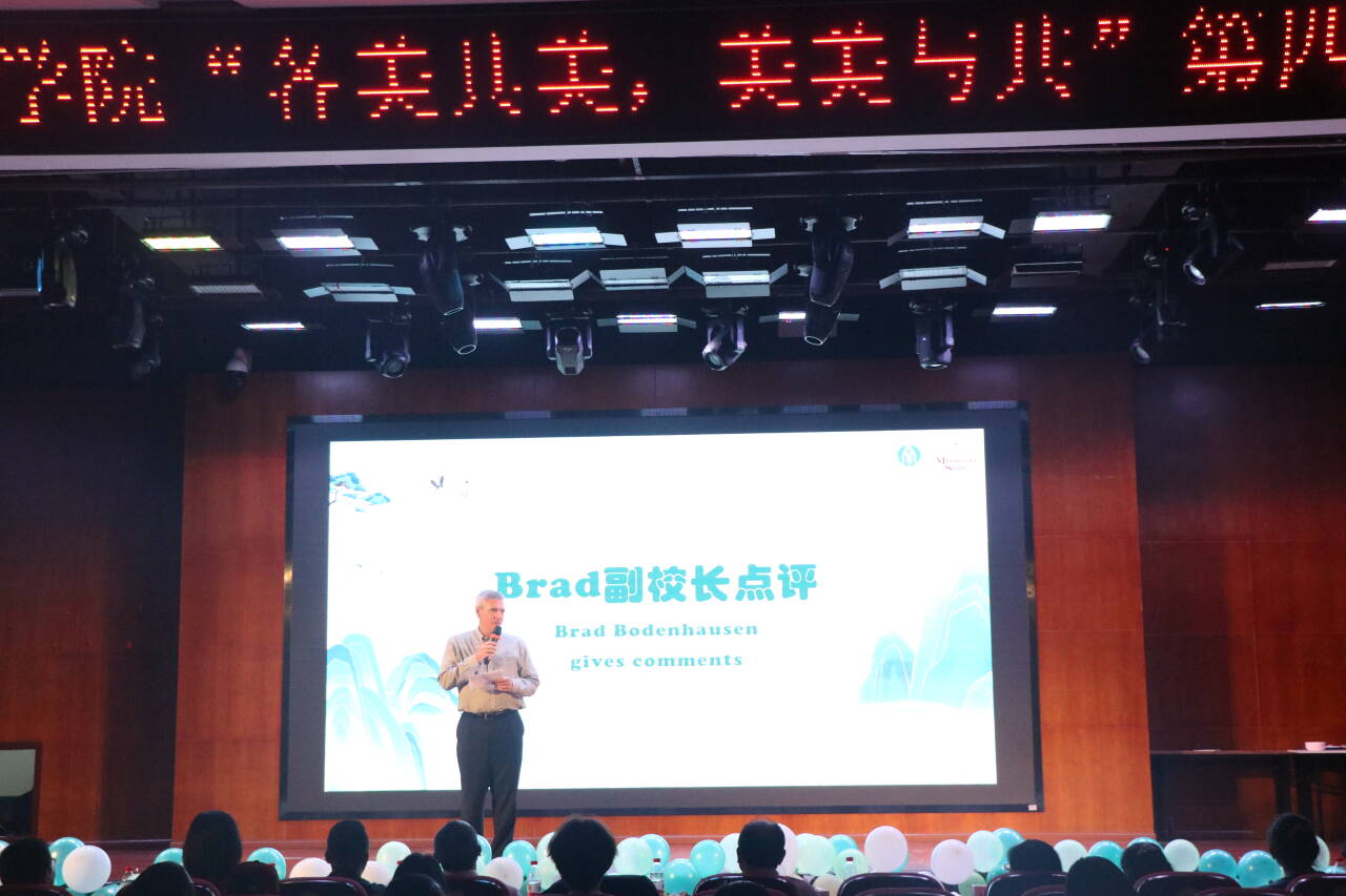 2024年6月14日19:00,农学与生物科技学院在西南大学南区学生活动中心107室隆重举办了以“各美其美,美美与共”为主题的第四届英语展演大赛。密苏里州立大学副校长Brad Bodenhausen、密苏里州立大学山林校区副校长Hwang Jinfeng、密苏里州立大学中国项目办公室主任Liu Dandan,密苏里州立大学教师Chen Liling、Kevin James 、Jacob Schneider、Jesse Carroll、Joshua Conaway,密苏里州立大学中国项目专员Zhang Xinge,西南大学国际处副处长陈炳君,教务处教学质量监控与评估中心主任陶丽,农学与生物科技学院党委书记阳义健、院长吕典秋、党委副书记郑莉佳、副院长张建奎以及辅导员、植科专业班主任出席了本次活动,与同学们共同见证了这一视听盛宴。本次大赛不仅是一场英语能力的展示,更是一次中外文化交流的盛会。通过精心策划的节目和活动,大赛成功地展现了学院丰富多彩的校园文化生活,并促进了中外优秀文化的交流与融合。参赛者们通过英语演讲、话剧表演等多种形式,展现了自己的才华和对文化多样性的尊重。