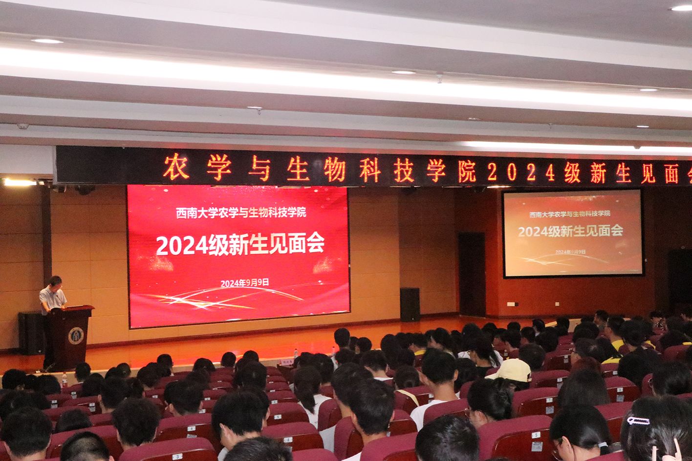 9月9日15:00,农学与生物科技学院2024级新生见面会在隆平楼404报告厅隆重举行。学院党委书记阳义健、院长吕典秋、党委副书记郑莉佳、副院长张建奎、副院长曲存民、各系主任、各办公室负责老师、全体辅导员以及2024级班主任出席了见面会,会议由副院长张建奎主持。院长吕典秋教授围绕学院办学历史、专业建设、师资力量、科技创新、人才培养等方面,向新同学们做了详细介绍,希望同学们牢记“追梦求实”的院训,加强专业认同,努力学习、勤于实践,做学农爱农知农的新农科人才。教师代表范艳华教授在发言中告诫同学们进入大学不要放松,加强自律,培养良好学习习惯。2022级硕士研究生王舒心同学用自己的奋斗历程鼓励新同学们奋发向上、不气馁、不懈怠,通过学院为我们搭建的平台在专业领域发出最强音。2024级植物科学与技术专业张瀚予同学作为新生代表发言,她的字里行间充斥着对大学生活的憧憬,并表示要在未来的学习生活中会更加勤奋努力,以梦为马,不负韶华。最后,学院党委书记阳义健老师讲话,号召同学们要坚定理想信念,厚植爱农情怀,要崇尚科学创新,练就兴农本领,要秉持坚毅品格,勇担强农使命,将个人目标融入中华民族伟大复兴的中国梦,为我国农业科技现代化贡献青春力量,用青春的能动力和创造力书写“新农人”的时代宣言。同时,他寄语同学们,学会做人,修身立德;学会独立,融入大学;学会学习,勤学善思;学会生活,快乐成长,在农学与生物科技学院这个大家庭成长成才。