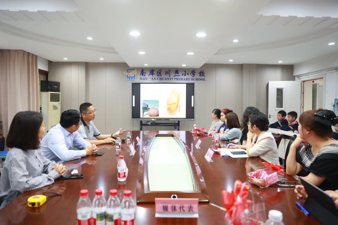 最后,川益小学校领导班子、教导处、科创工作室、青年教师成长工作室成员及其他师生代表,与学院教师代表举行座谈。会上,川益小学介绍了校园种植活动的整体构想,我院教师代表则从专业角度提出种植管理与课程融合建议,为“大学—小学”联动育人模式的持续深化提供了坚实支撑。