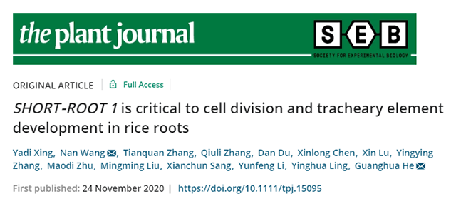 11月25日,我院水稻课题组在The Plant Journal上发表题为SHORT‐ROOT 1 is critical to cell division and tracheary element development in rice roots的研究论文,解析了水稻短根基因SR1调控根发育的分子机制。