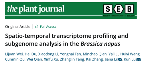 近日,植物学TOP期刊The Plant Journal在线发表了西南大学李加纳/卢坤教授团队发表题了为"Spatio-temporal transcriptome profiling and subgenome analysis in the Brassica napus”的研究论文,揭示了完整的甘蓝型油菜时空转录组图谱,挖掘了甘蓝型油菜生长和发育的重要基因。