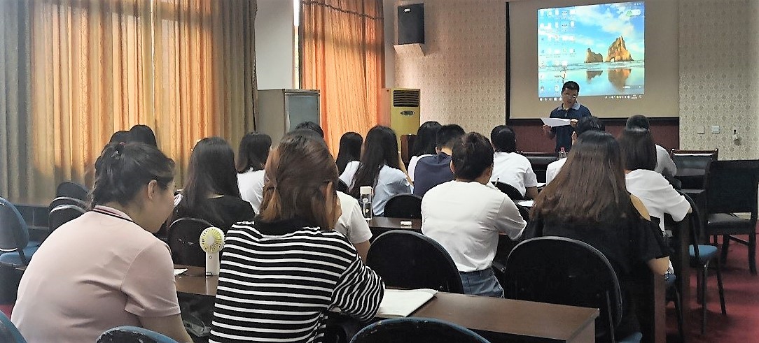 2018年7月5日上午8:30,隆平实验班本学期最后一次进展汇报在37教学楼4楼会议室如期举行。学院特邀了泰国孔敬大学5名交换生一起开展报告。本次汇报由学院外事秘书刘志斋老师主持,赵芳明教授进行现场点评指导。