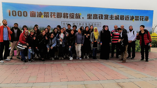 为鼓励我院学生积极投身农业相关事业,丰富学生课余活动,2019年3月10日,在张建奎副院长、刘志斋老师、卢会翔老师的带领下,农学与生物科技学院2016级隆平实验班学生及11名留学生,参观了“网红打卡圣地”——复盛五彩油菜园。本次活动分为参观五彩油菜园和素质拓展活动两个部分。