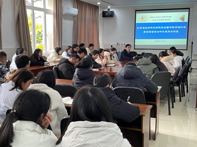 根据学校《关于开展2022年寒假前实验室安全事故警示教育通知》要求和学院寒假实验室安全工作部署,学院于1月14日下午3:00在37教207会议室召开农学与生物科技学院安全警示教育培训会暨实验室安全和水电安全检查。学院党委书记阳义健、院长吕典秋、副院长卢坤、各级安全员和各团队学生代表参加会议。会议由卢坤副院长主持。