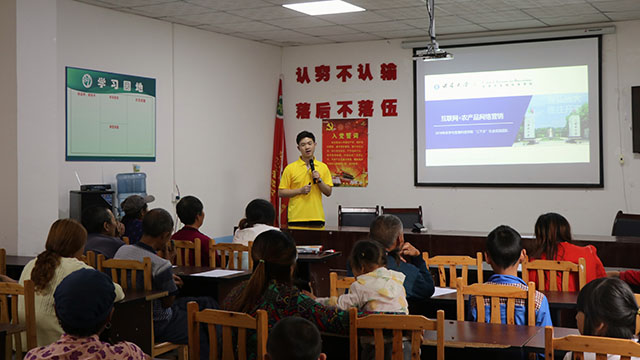 下午两点,实践队员们早早地来到活动室布置会场,为当地村民准备一场包含乡村振兴政策、马铃薯种植技术和互联网销售三个内容的宣讲培训会,支招村民脱贫致富。三点半开始时,会议室已坐满了从四面八方赶来的村民。队员们围绕“马铃薯病虫害绿色防治”、“互联网+农产品销售”以及“中央一号文件”等进行培训课程讲授和政策宣讲,各位村民认真地倾听,时而提问。用方言讲授更显亲近,队员们娓娓道来,村民们倾耳细听,大家共同致力于更美好的乡村发展,一起尽心于更繁荣的乡村未来。