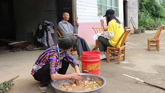 7月9日早,三组小分队紧密地准备妥当物资后,就走入了农户开始调研。表明来意后,队员和村户围坐一起,共同完成问卷调查。为了受访的村民能够更好地理解涉及到的科技兴农、农业耕作、经济生活等各方面问题,队员们为他们进行了详细地讲解。淳朴的爷爷奶奶给大家端来板凳,还从家里拿出来儿女买的水果罐头分给大家。在调研中,有一位阿姨让我们印象尤为深刻。丈夫外出打工,前几年受了伤,做不了重活。家里的农活都是由她一个人承担,还要抚养一个十一岁的女儿。我们问到住房问题时,她笑着说,“这几间房子就是国家帮我们建的噻,我就是很满意现在这样的条件。我平时做点农活,卖点粮食,供我小女子读书嘞。”院坝的空地上堆着她才从地里收回来的马铃薯,屋里还放着昨天女儿生日时的蛋糕包装盒。贫困的现状并没有将她压垮,生活的重担也无法让她倒下,她依然乐观积极地面对这些挑战,并一步步向前走去。国家扶贫战略正在一步步攻克难关,向每一个有困难的贫困家庭伸出援手,为他们点燃希望。