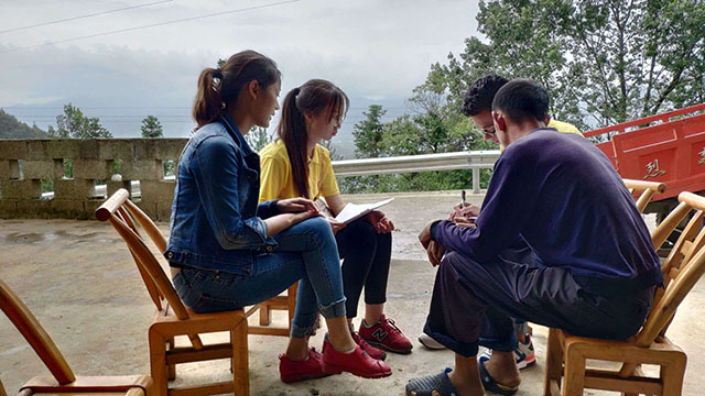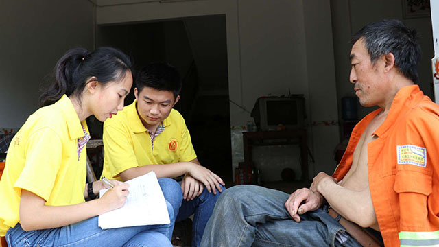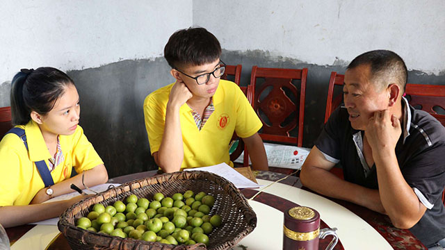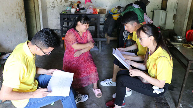 院坝宣讲会结束后,走村入户的调研活动开启。首先由去年参与过调研的老队员带着新队员们走进第一家农户,在对第一家农户的调研完成后,其他队员掌握到了行之有效的调研访谈方式,大家按原计划的三人一组展开调研。午后时分,天空突然下起暴雨,但仍然抵挡不住同学们昂扬的斗志。在经历了上午的“探索式”调研后,下午正式开启大面积农户调研,每组负责四户的调研任务,针对家庭人口收入、种植作物等基本情况展开。调研组同学以礼貌的态度走进每一家农户,以严谨的态度提出每一个问题。当中途遇到语言沟通存在障碍、村民无法理解提问等现象时,队员们也能够机智巧妙的化解,使调研越来越得心应手。与农户的深入交流,让队员们进一步感受到了梓树村特有的风土人情。热情的村民们侃侃而谈,使大家与这个村落的距离又拉近了一步,更有利于接下来几天的实践活动开展。