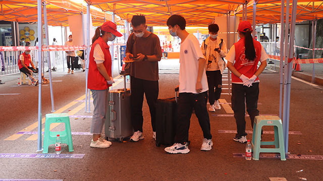 金秋送爽,丹桂飘香,又是一年迎新时,变的是迎新的志愿者队伍,不变的是每一届学长学姐们对新生的照顾与关爱。面对近期严峻复杂的疫情防控形势和“外防输入、内防反弹”压力持续增大的局面,学校为筑牢疫情防控安全防线,根据形势及时对今年的迎新方案作出调整,由学校统筹各学院志愿者在一号门、二号门、三号门、第三运动场等入口和中转站迎新工作服务点做好接站、秩序维护、人员引导、行李搬运等服务。接到迎新志愿服务最新方案后,农学与生物科技学院立即在全院范围内广泛动员高年级同学积极报名参与到志愿服务工作中来,一共招募到165名志愿者,并于9月9日晚上召开线上会议对志愿者就工作流程、纪律要求、疫情防控细节等做集中培训。9月10日上午6点30分,农学与生物科技学院志愿者在学校2号门迎新工作服务点正式参与到学校迎新工作中。