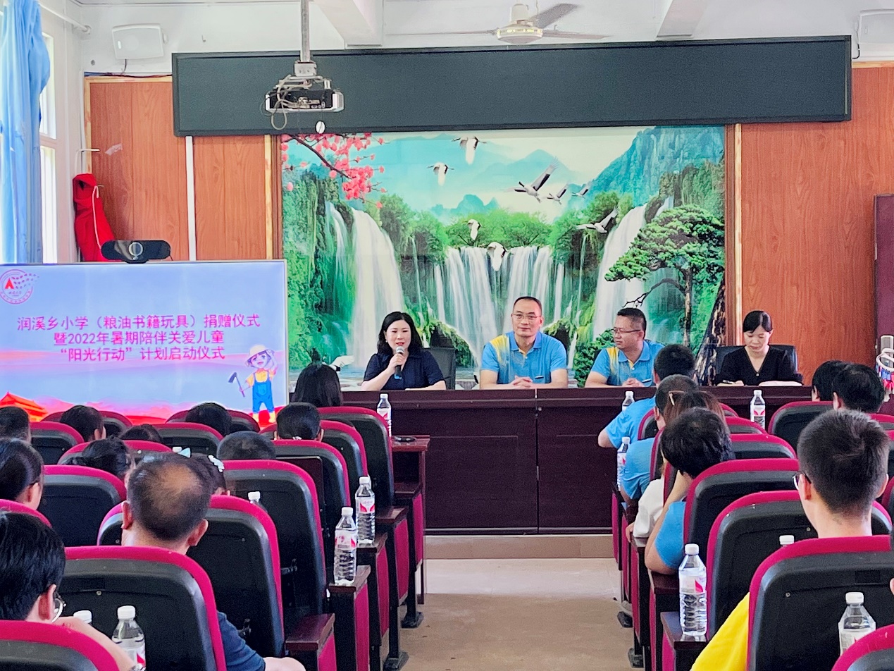 7月10日,帮困助学捐赠仪式暨2022暑期陪伴留守儿童“阳光行动”计划启动仪式在润溪乡小学三楼大会议室顺利举行。彭水县乡村振兴局局长高才华、彭水县妇联副主席廖凤莲、润溪乡乡长皮小坤、润溪乡纪委书记刘志潘、润溪乡小学副校长文伟,西南大学农学与生物科技学院党委书记阳义健、学院院长吕典秋、学院副院长张建奎、学院工会主席戴秀梅出席活动,彭水县润溪乡留守儿童学生代表及农学与生物科技学院赴重庆彭水助乡村振兴师生服务团成员共同参与。