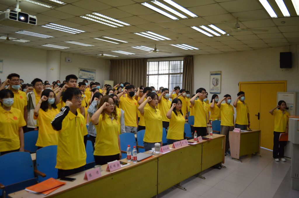 会议最后,由包智中同学带领全体团委及学生会成员宣誓,所有成员举起右手,抬头挺胸,眼神坚定,激昂澎湃地喊出宣誓词,充溢着服务师生的热情、成长蜕变的渴望、助力学院发展的决心。