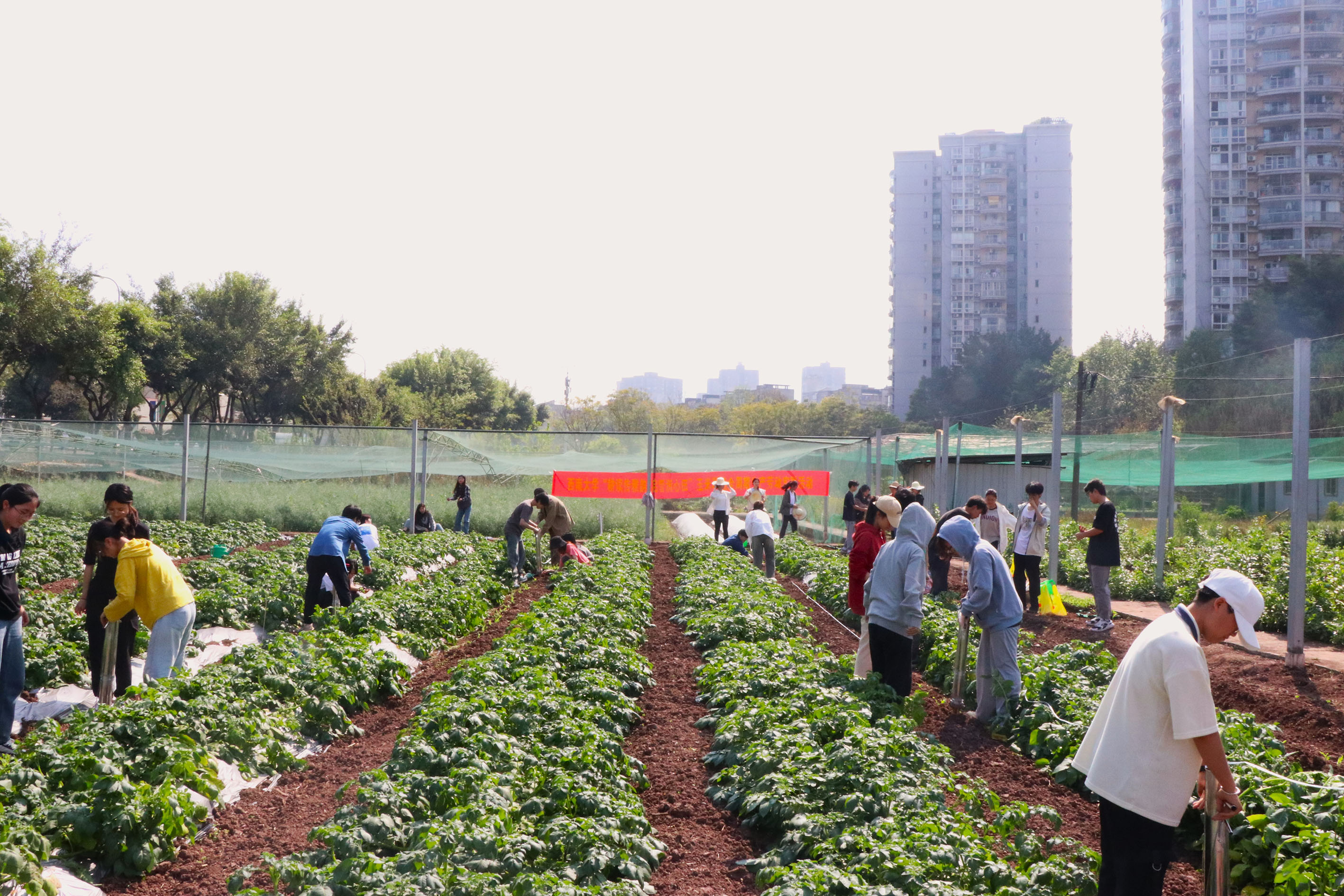 随后,同学们分组协作,开始实践操作。体验者和农学专业同学分组结对,相互配合,井然有序。他们先利用线绳和测量工具进行了精确的测距挖窝工作,确保玉米的根系发展和营养吸收有合理的空间。接下来,进入移栽环节,体验者们在农学专业同学的指导下,小心翼翼地将幼苗从育苗盘中取出,利用栽苗器移植到已经挖好的窝中。然后,大家按照先前计算的玉米需肥量,进行施肥和浇水操作,保障玉米后续生长有充足养分水分。移栽现场同学们热情饱满,认真投入。经过一个多小时的辛勤劳作,一行行玉米苗整齐地在田间昂首挺立,焕发出勃勃生机。