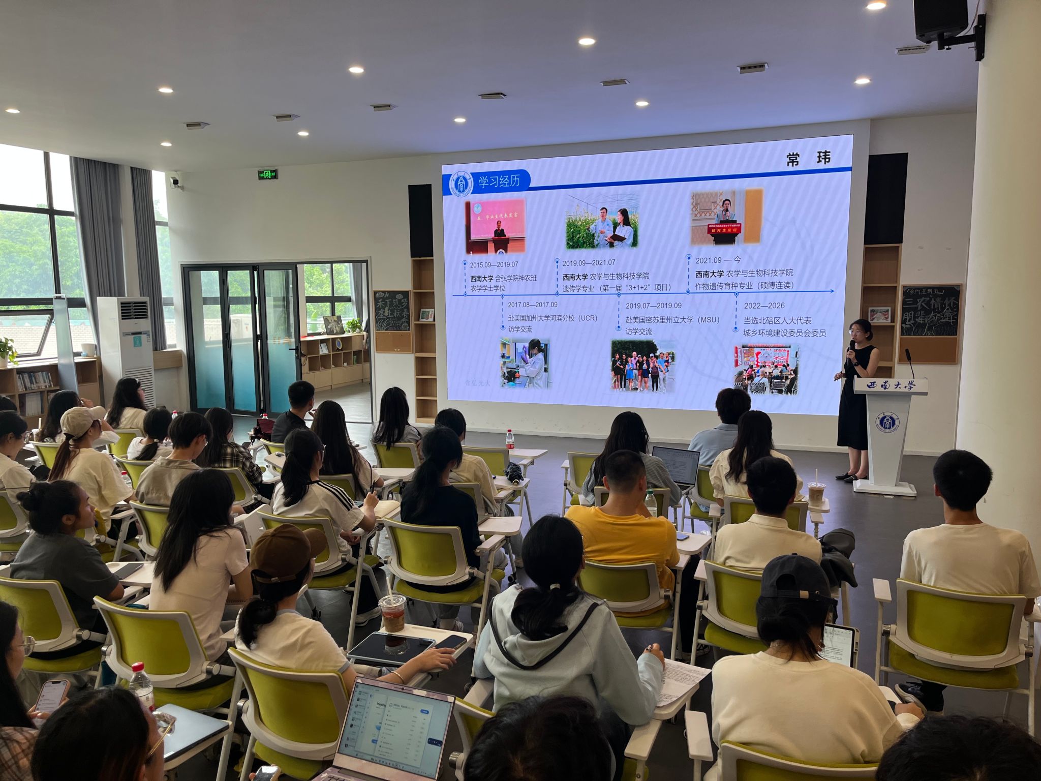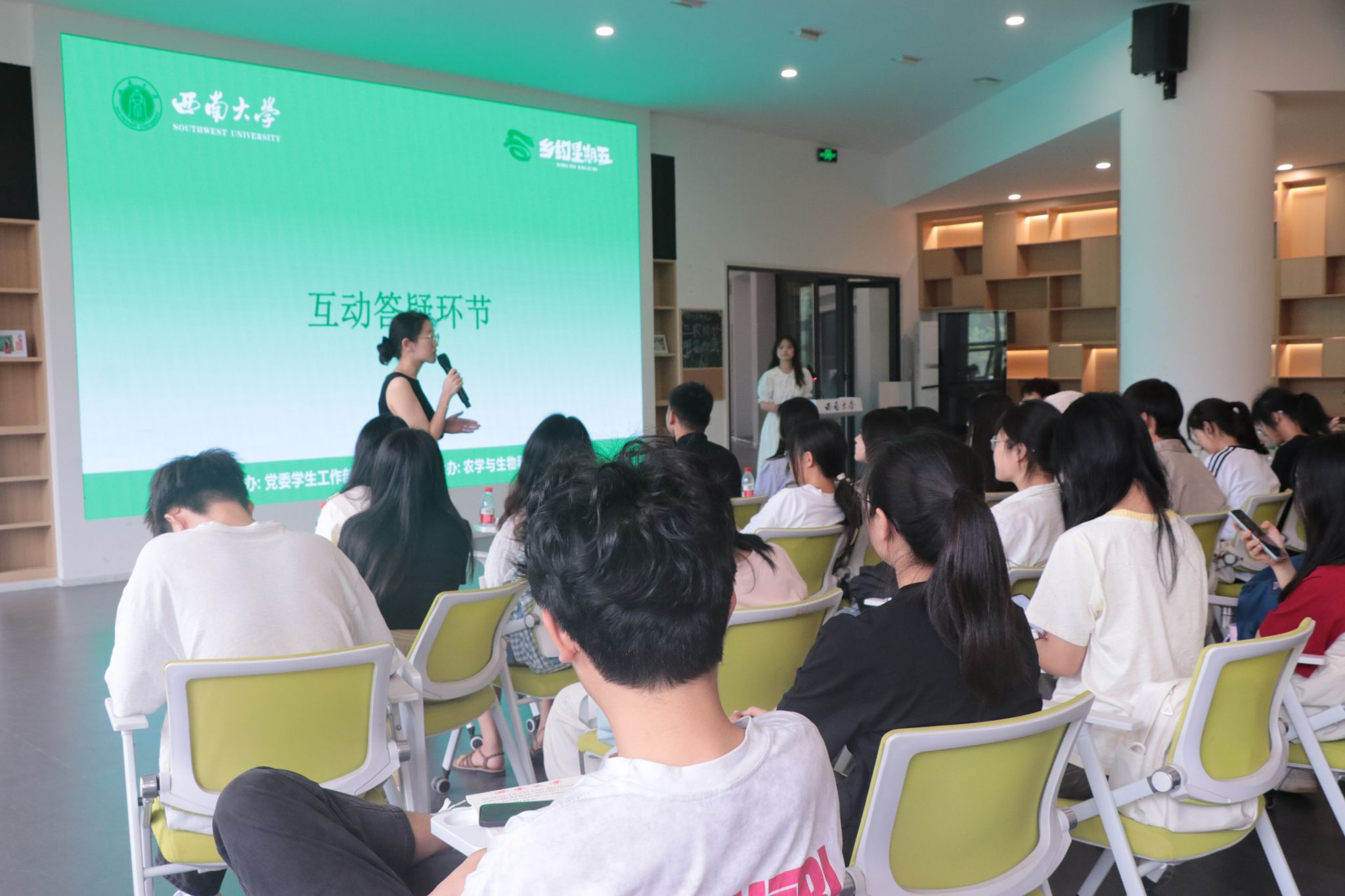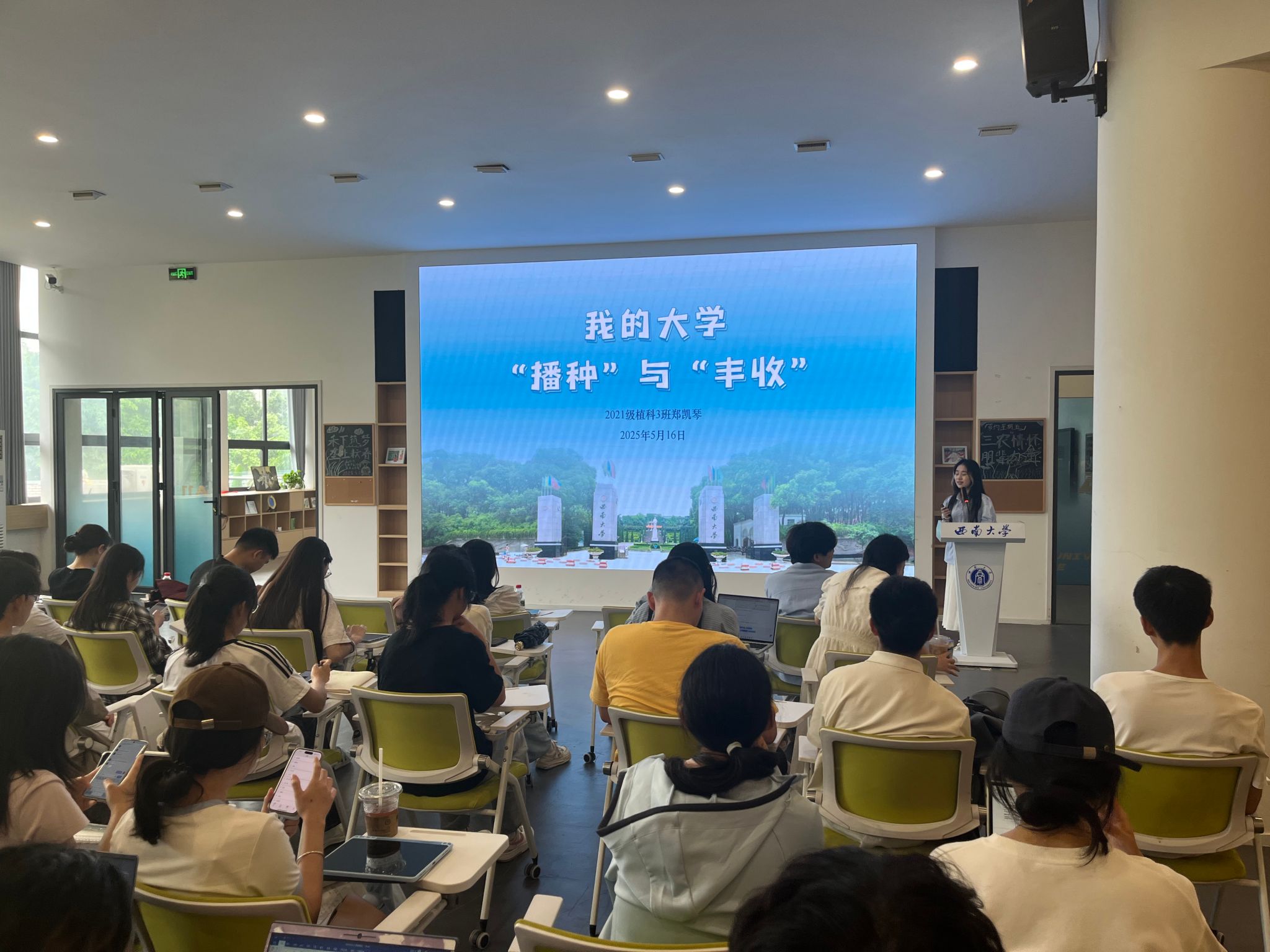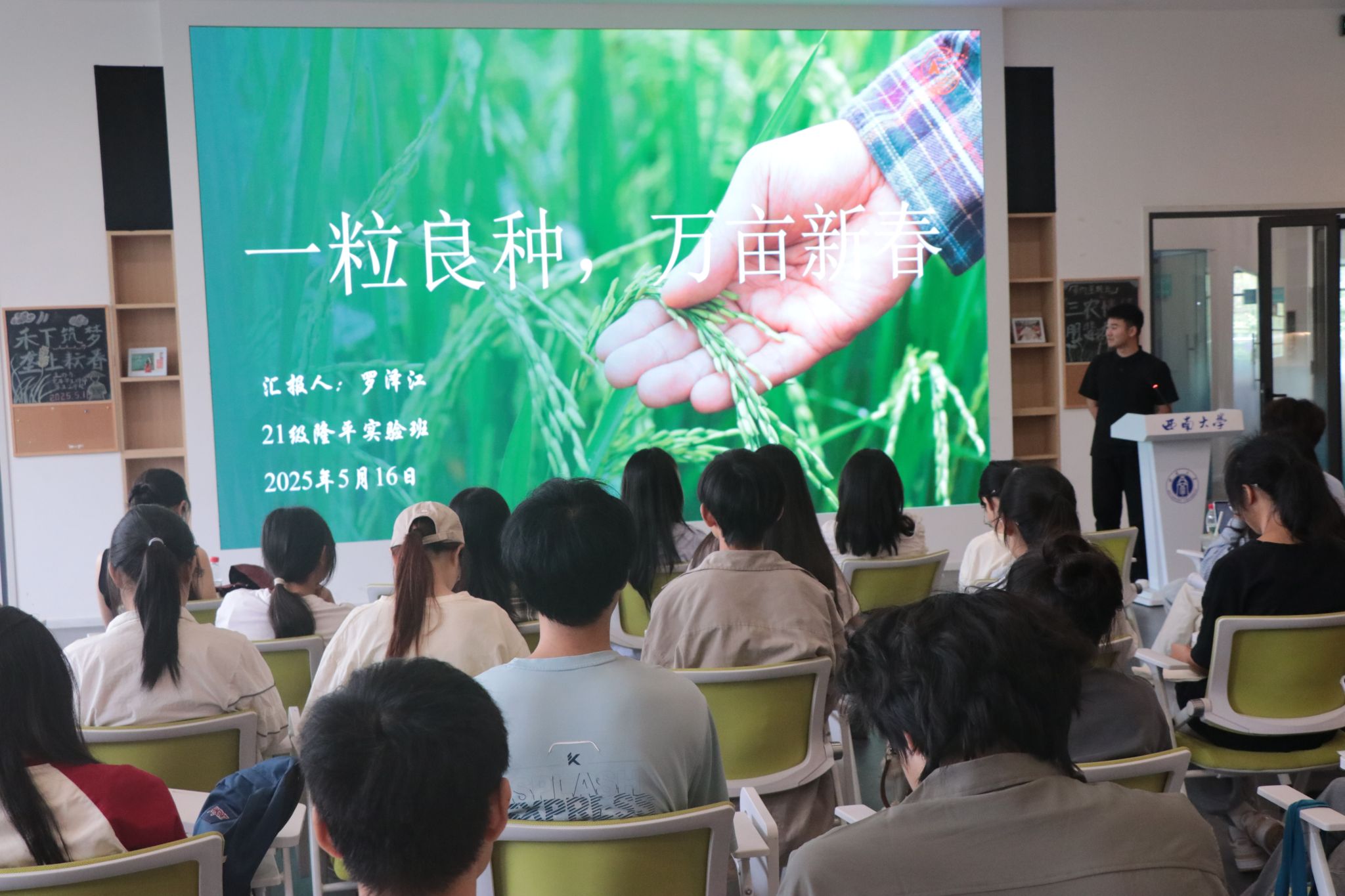 5月16日下午,由西南大学党委学生工作部、学生工作处主办,农学与生物科技学院承办的第八期“乡约星期五”学生成长沙龙在青李空间多功能厅成功举办。本期沙龙以“禾下筑梦,垄上耘春”为主题,通过邀请学院4名优秀学生代表,围绕青年农学人的成长与实践展开分享,为农科学子带来了一场思想与经验的盛宴。学院团委书记许莹竹老师、部分涉农专业学生参与活动,本次沙龙由学院2023级学生聂雪莹主持。