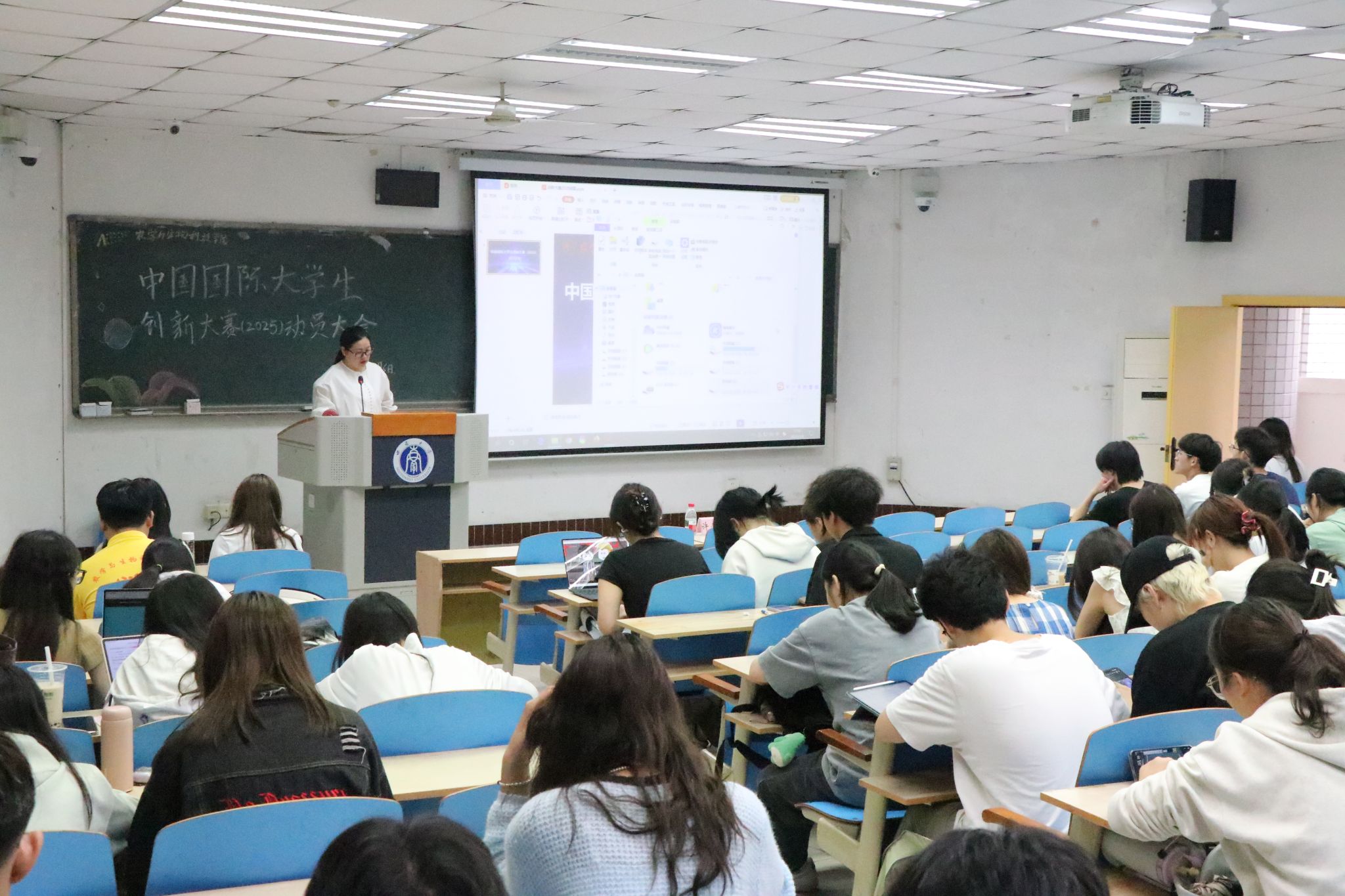 在动员会首环节,学院团委书记许莹竹老师围绕中国国际大学生创新大赛的赛事内涵展开深度解析。她系统阐释了赛事“培育具有社会责任感、实践能力和创新思维的新时代人才”的核心宗旨,强调其为青年学子搭建了创新成果展示与学术交流的双重平台。随后,她围绕大赛的相关内容,结合学院专业特色,进行了细致入微的讲解,帮助在场学子深刻认识到此次大赛是一个难得的锻炼机会,不仅能够提升个人的专业能力和创新思维,还能与来自全国高校的优秀学子同台竞技,开拓视野。
