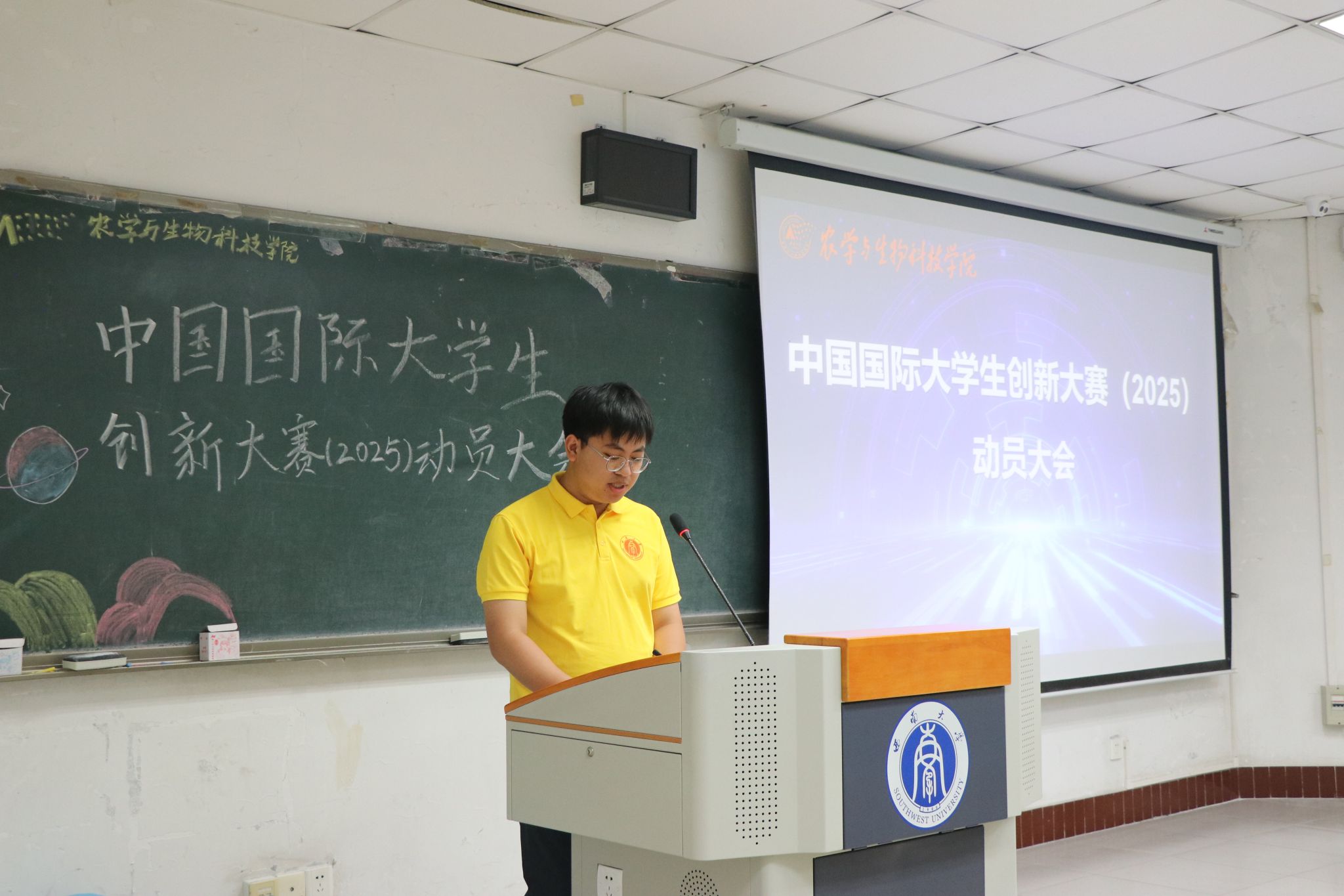 2025年5月6日,农学与生物科技学院"中国国际大学生创新大赛(2025)动员大会"在32教212举行。活动旨在激发学生创新创业热情,深化对赛事的理解,搭建师生互动的交流平台,为即将到来的中国国际大学生创新大赛注入强劲动力。学院团委书记许莹竹作为嘉宾出席活动,现场气氛热烈,展现了农生学子锐意进取的精神风貌。