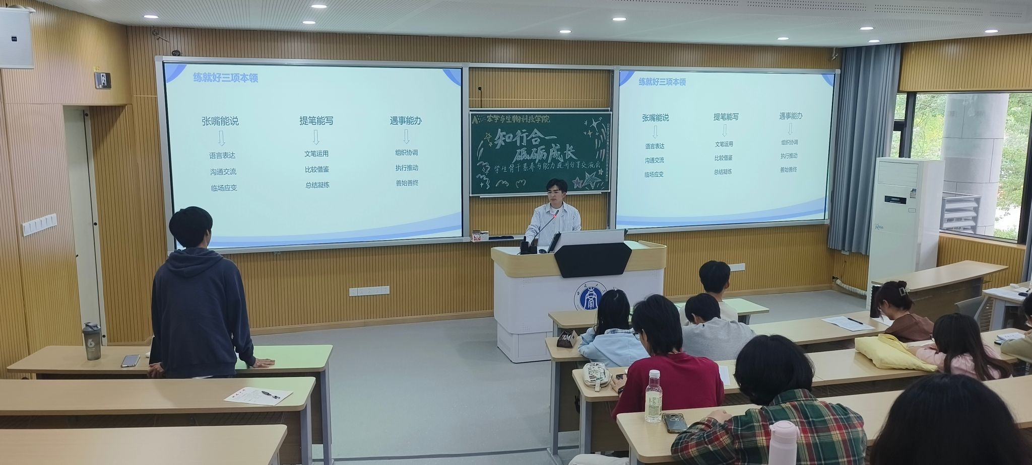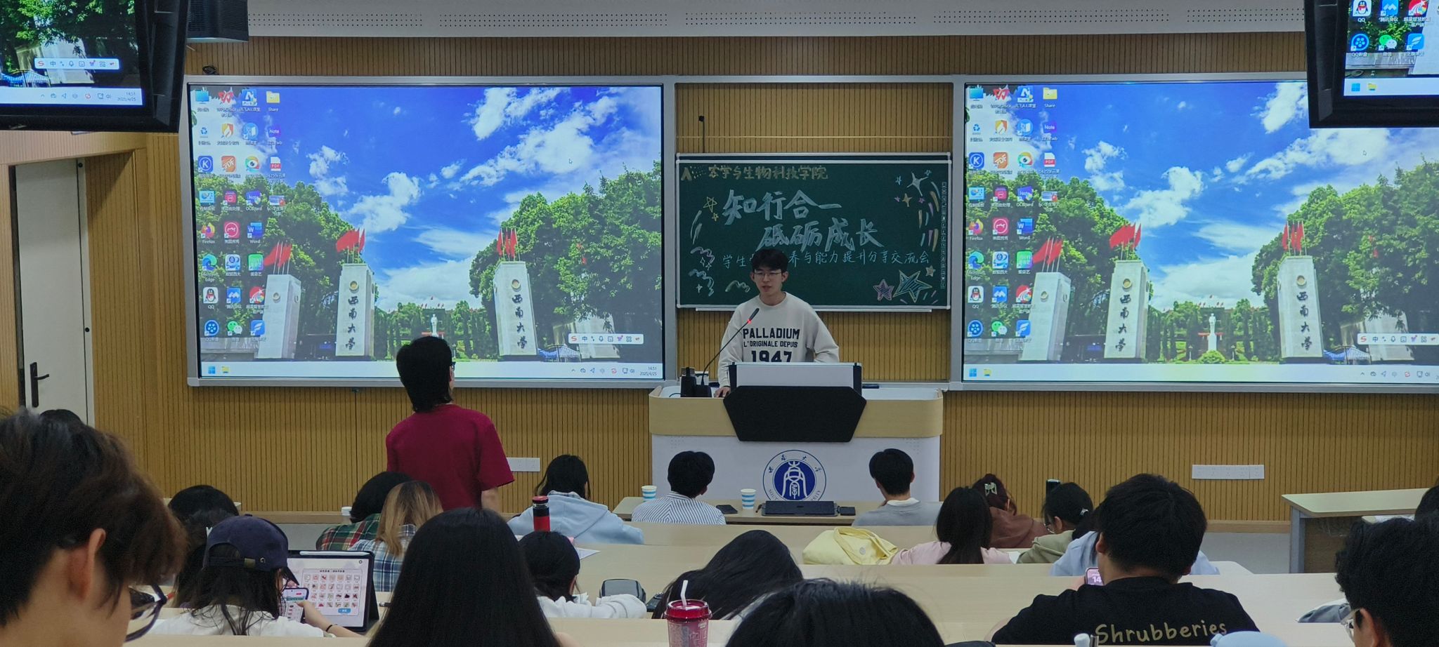 2025年4月25日,西南大学农学与生物科技学院第十二期团校培训班“知行合一,砥砺成长”分享交流会于31教顺利举行。此次活动特别邀请到学院优秀学生骨干李济聪、张云昊同学担任主讲人,为学员们带来一场干货满满的经验分享盛宴。