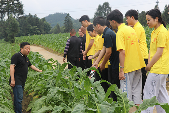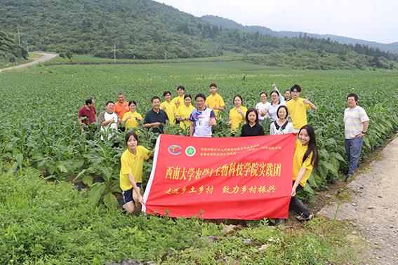烟草作为彭水县润溪乡的特色支柱产业,为促进农户增收致富发挥了重要作用。“甘薯可在一定程度上抑制烟草病菌的繁殖蔓延,降低烟叶连作风险”,7月6日上午,农学与生物科技学院烟草育种栽培专家戴秀梅老师为当地烟农、烟技员开展烤烟—甘薯间种套作技术专题讲座,介绍烟薯套种的优势意义、操作步骤和技术要点,并推荐学院研发的“全国十大好吃薯”——渝红心薯98和渝紫香10号作为间套作品种,以提高土地利用率,增加烟农收益,助力农业增效。同时,实践团的同学们专门制作了烟草—甘薯间套作技术指导手册,分发给烟农和烟技员,图文并茂地呈现操作步骤,便于他们平时查阅。讲座后,重庆彭水烟草科技小院挂牌仪式在润溪乡烟草站举行。据了解,自2015年西南大学农学与生物科技学院在润溪乡建立烟草研究基地起,学院定期安排专家团队为当地烟草种植开展技术指导,并派出本科生、研究生常驻基地,深入村屯农家,为烟农提供技术服务,助力润溪烟草产业发展。