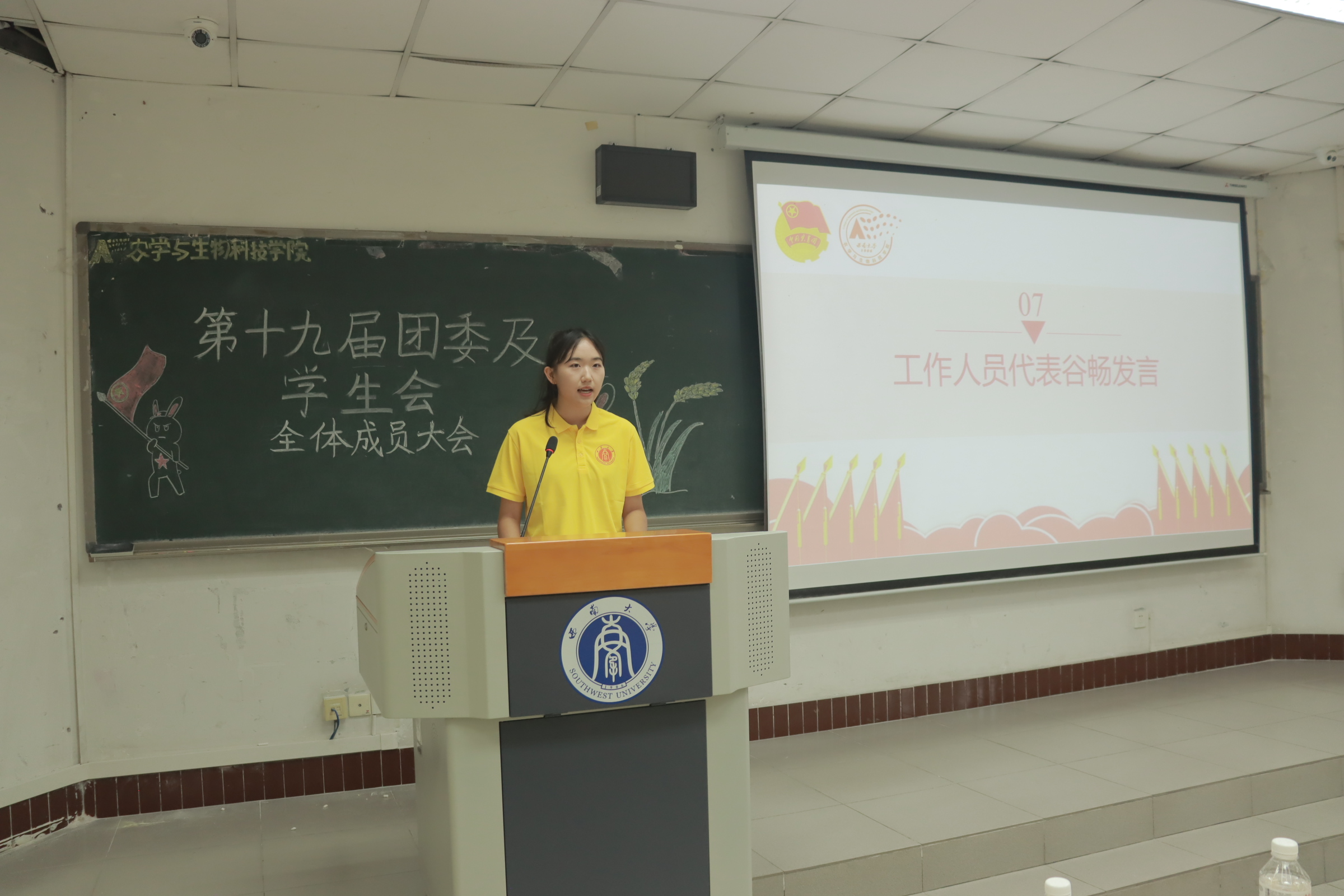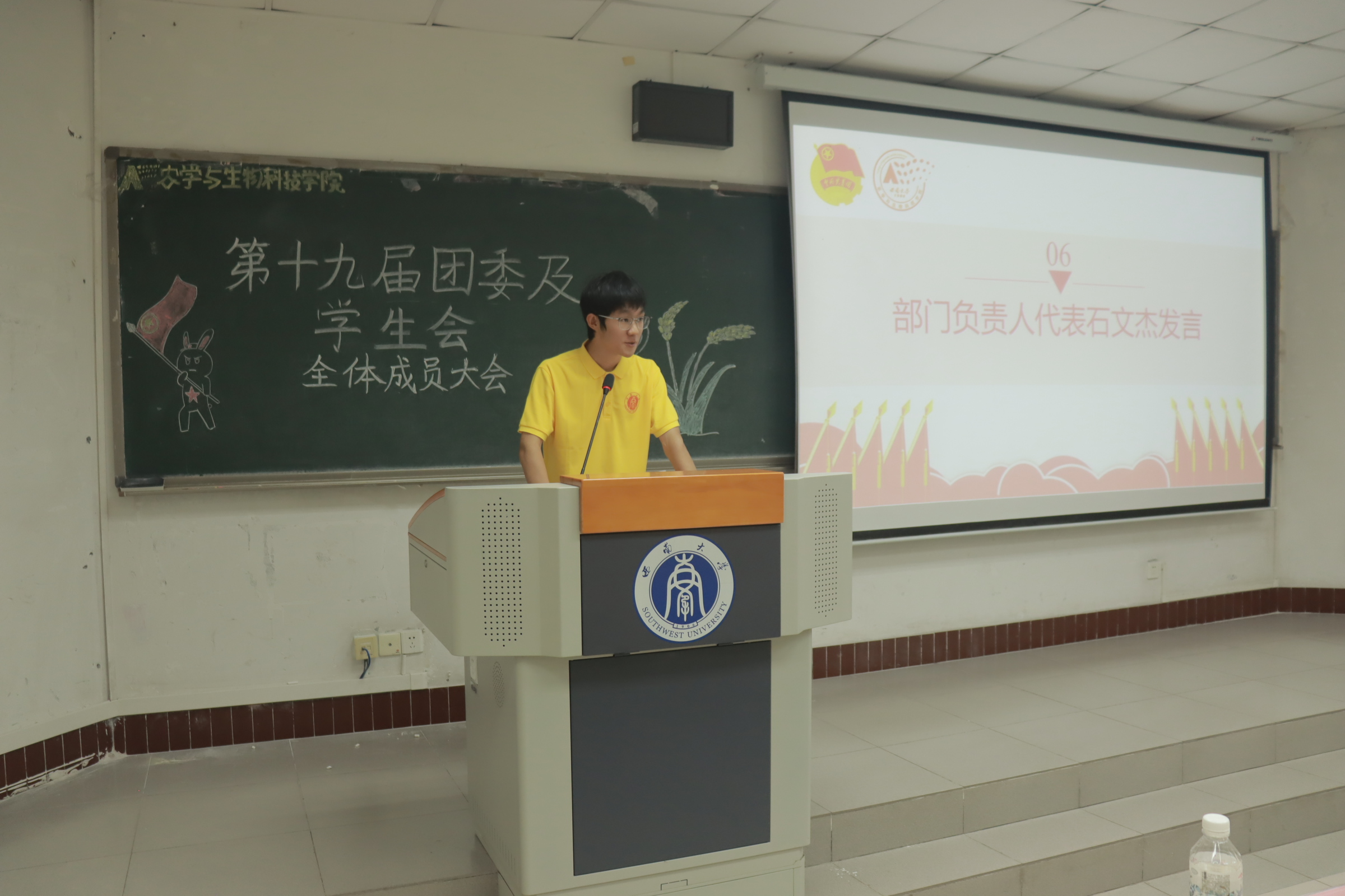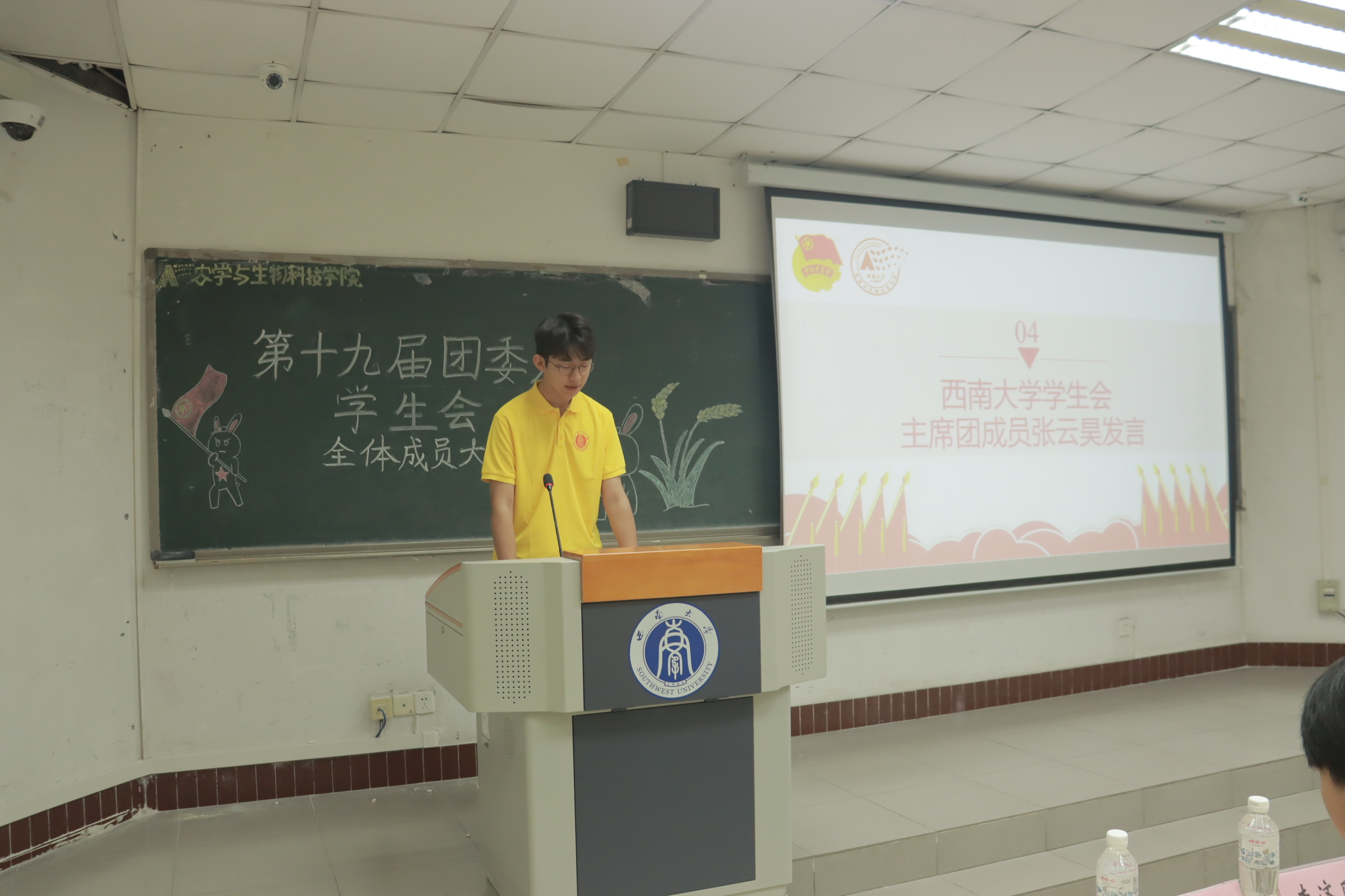 2023年10月19日,农学与生物科技学院第十九届团委及学生会全体成员大会于32教212教室如期举行。学院党委副书记郑莉佳老师,团委书记许莹竹老师,学院优秀学生骨干代表、西南大学学生会主席团成员张云昊同学出席大会,第十九届团委及学生会全体成员共同参加,大会由办公室工作人员李佳宜同学主持。