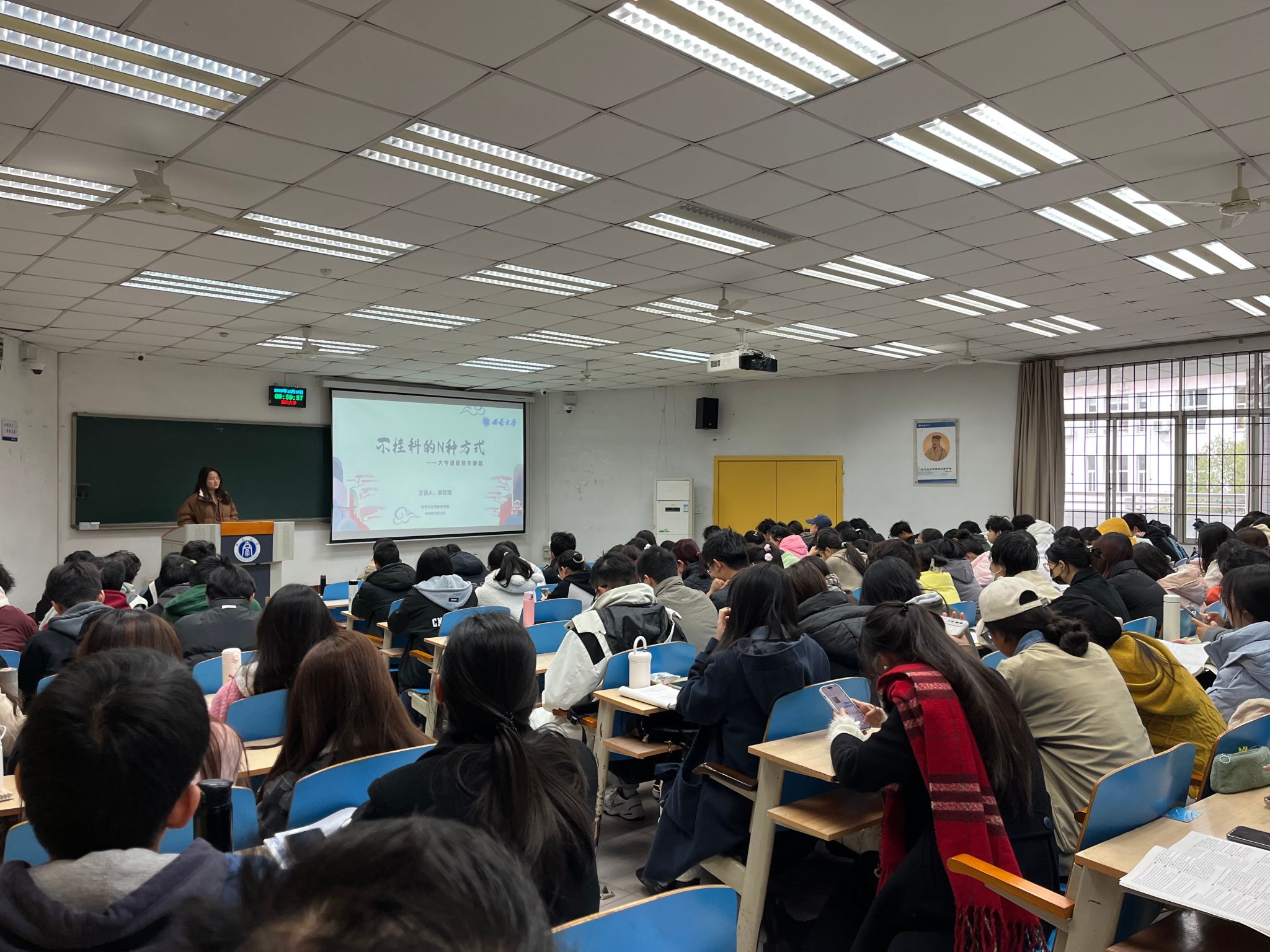 为助力同学们期末高效复习,全力备战期末考试,年级大会邀请到学院2021级级辅导员高荣蓉老师、2021级和2022级优秀学长学姐为同学们传授考试复习方法和知识要点。首先,2021级辅导员高荣蓉老师以《不挂科的N种方法——大学课程通关秘籍》为题,向全体2023级同学讲授了大学里高效学习的方法,从重视课本和老师的PPT、多刷题等基础秘籍到上课跟着老师划重点、建立固定学习社群、学会寻求优质资源等进阶秘籍,以幽默的口吻强调了成绩的重要性。高老师结合同学们的学习生活实际,以“结课时间晚,课程难度大”的现状警醒大家,以激励大家要有紧迫感,把复习提上日程。最后她以2021级优秀学姐学长的突出表现为例,帮助2023级同学树立学习榜样。