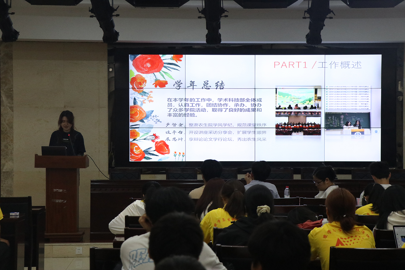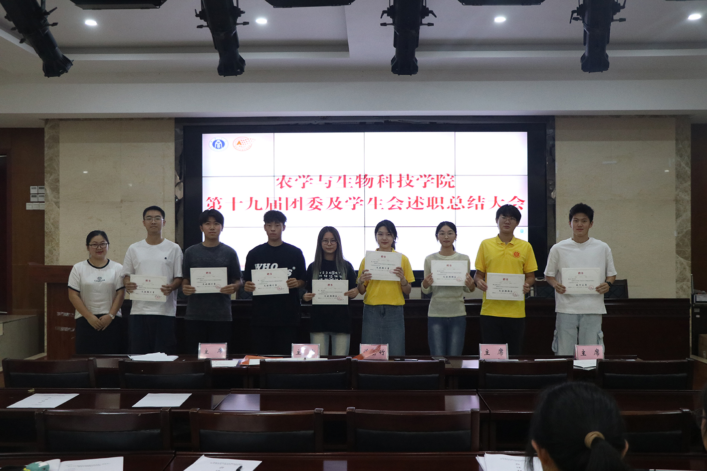 6月16日,农学与生物科技学院第十九届团委及学生会述职总结大会于南区活动中心106会议室顺利召开。学院团委书记许莹竹老师出席会议,第十九届团委及学生会全体成员共同参会。