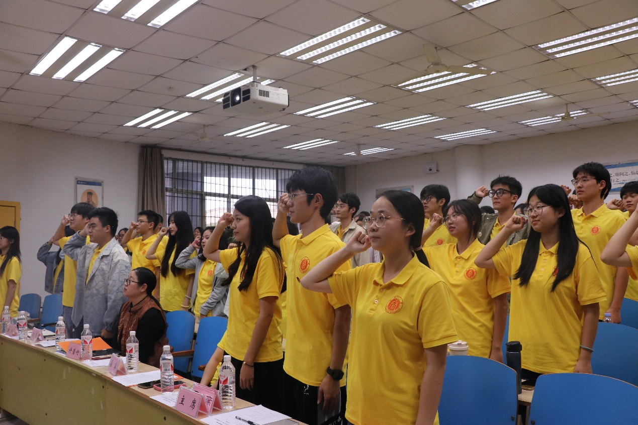 最后,工作人员郭康宇同学带领全体成员进行宣誓,大会在庄严的宣誓声中达到了高潮。全体成员在宣誓中表达了自己为学生工作贡献力量的决心和信念。随后,大会在共青团花园合影留念后圆满结束。
