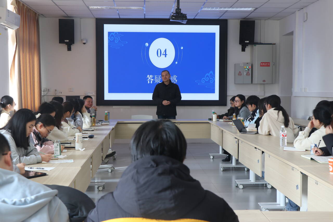 活动最后,老师们为同学们送上了指导寄语。桑贤春老师首先指出,同学们要以学习为主,大创为辅,要思路清晰,明确自己的需求与能力,并据此合理申请项目等级、设计项目内容,以及推动项目的成果转化。项目应形成完整的闭环而非一味追求内容丰富度,实验中要夯实基础知识、加强沟通交流、详尽记录实验数据。其次,桑老师还着重强调坚持诚信原则。他要求同学们确保数据的真实性,坚决避免照搬前人研究成果,而要在其基础上进行拓展与创新。实验记录必须真实且详尽,不容许有虚假成分。再次,桑老师强调了规矩意识与谦逊态度。他提醒大家,在项目申报、实验进行以及结题验收等各个环节中,必须保持一致性和规范性,同时书写也要符合学术标准。此外,同学们还应保持谦虚好学的精神,不断吸收新知识。最后,桑老师阐述了交际与沟通的准则。有效交流、保持尊重、发现并解决问题以及良好的交际,都是同学们在项目中不可或缺的能力。他提醒同学们要在实践中不断锻炼和提升听说读写等基本技能。