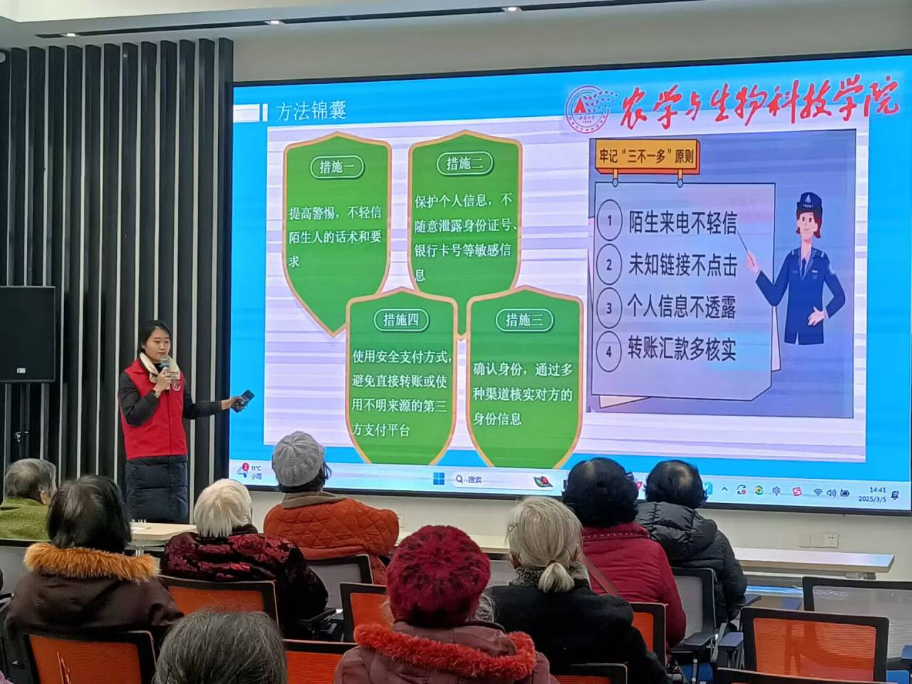 西南大学农学与生物科技学院红砖服务队的志愿者们通过发放反诈传单、互动答题、PPT讲解、推广“国家反诈中心”APP等形式,以实际行动践行雷锋精神,有效提升了社区居民的防诈骗意识,为市民的财产安全筑起了一道坚实的防线。