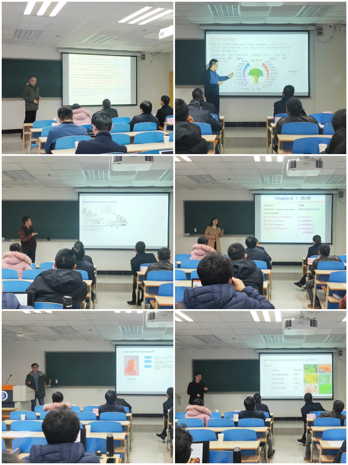 试讲分为两个环节。李关荣、郭彦军和刘志斋三位老师分别针对基础生物化学、植物营养与肥料学和生物统计与试验设计课程进行双语试讲。倪郁、周永洪、蒋锐、肖前林、段美春老师针对植物分子生物学、植物生物技术、粮食饲料能源作物学和农业可持续发展理论与实践课程进行共课能力展示。