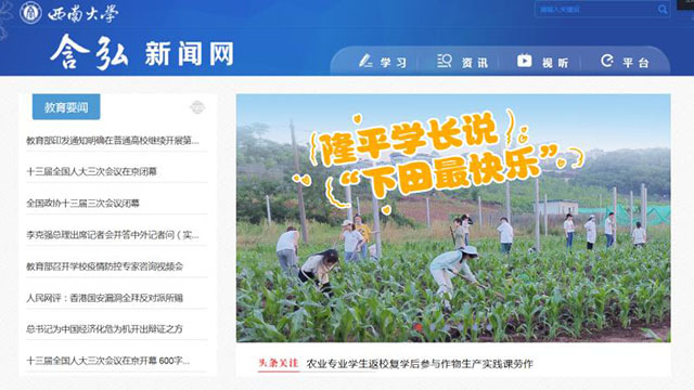 6月6日,学校含弘新闻网成人文学报道了我院2018级农学专业学生返校复学后在教学实验基地进行《作物生产实践》课玉米套作甘薯相关农事活动劳作的情况。据悉,在返校复学线上学习一周后转至线下学习,2018级农学专业各班学生逐步投入农作物生产实践,在本周已陆续完成玉米甘薯套种部分实践内容。