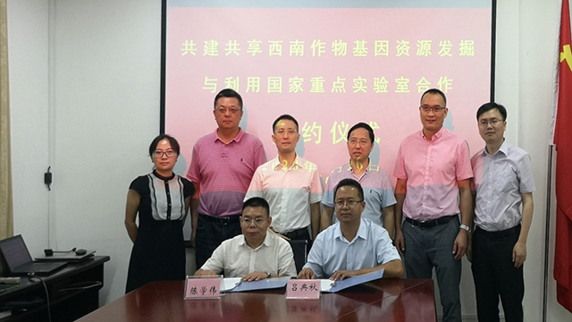 西南作物基因资源发掘与利用国家重点实验室(筹)主任陈学伟、副主任王静,四川农业大学农学院院长黄玉碧,西南大学科技处副处长何林,农学部部长何光华,学院党委书记阳义健、院长吕典秋,副院长卢坤出席签约仪式。