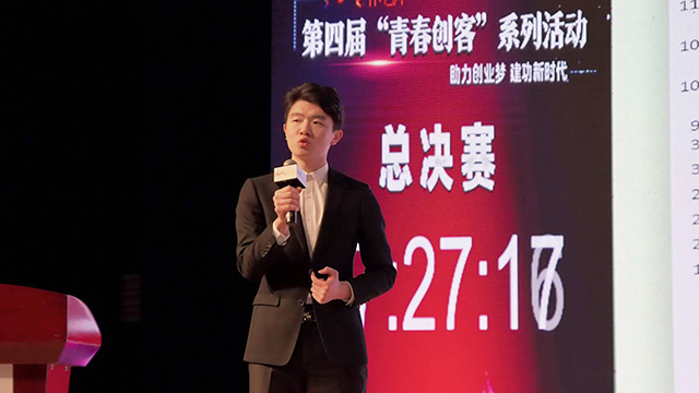总决赛现场,来自全国15余所高校的百余名青年创客展开激烈角逐,19个参赛项目涵盖了智能生活、文化推广、现代农业等多个热门领域。通过项目展示、项目答辩等环节与评委面对面交流;中鑫尚和投资基金公司董事兼执行董事霍永进、著名投资人张彪等七位专业投资人组成的评审团队,从发展前景、商业模式、营销策略、团队架构等多方面对创业项目进行专业、严谨的评判和中肯的建议。我校青年创客孙伟轩、王燕琼上台进行项目路演,通过PPT演示讲解依次阐述项目特点、商业模式及应用场景,分析了项目存在的优势及市场风险,充分展现出了成人文学