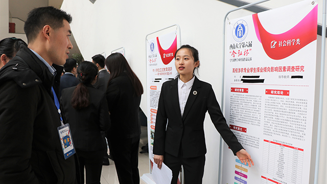 为切实推动学校创新创业教育深化改革,搭建创新创业的平台,形成刻苦钻研、勇于攀登学术高峰的氛围,取自校训“含弘光大,继往开来”的西南大学“含弘杯”学生课外学术科技作品竞赛已经开展了六届。2018年12月16日,第六届“含弘杯”学生课外学术科技作品竞赛决赛在西南大学中心图书馆隆重举行。在这场学术盛事现场,来自农业、文化、互联网等多个领域的参赛团队进行最终的终审答辩环节,吸引了众多学生驻足观摩。终审展示现场,发明制作、自然科学及社会科学等各类别作品以展板或样品的形式呈现出来,评委老师们细致观察了展示的作品模型,观看了作品的说明展板,也聆听了各个团队的详细讲解。我院党委副书记方凤玲、副院长张建奎、团委书记许莹竹、作品指导老师刘志斋莅临现场为我院参赛团队选手指导并加油。