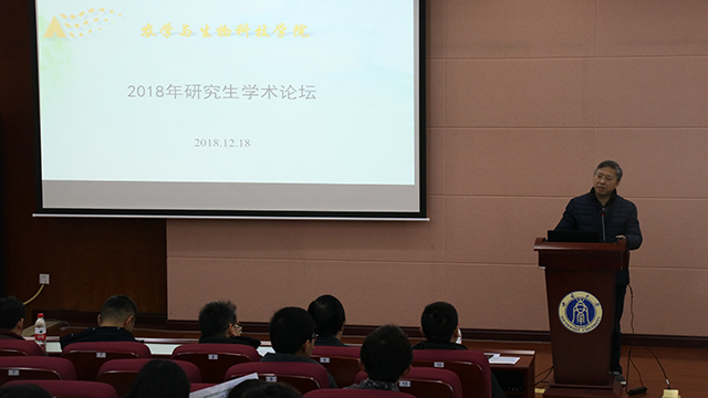 为了营造校园学术氛围,增强学院研究团队的交流与合作,鼓励广大师生潜心研究,勇于创新,共同促进学院生物学领域的蓬勃发展。12月18日,农学与生物科技学院在隆平楼2楼报告厅举办2018年研究生学术论坛。学院部分教师、全体博士及硕士研究生出席此论坛。