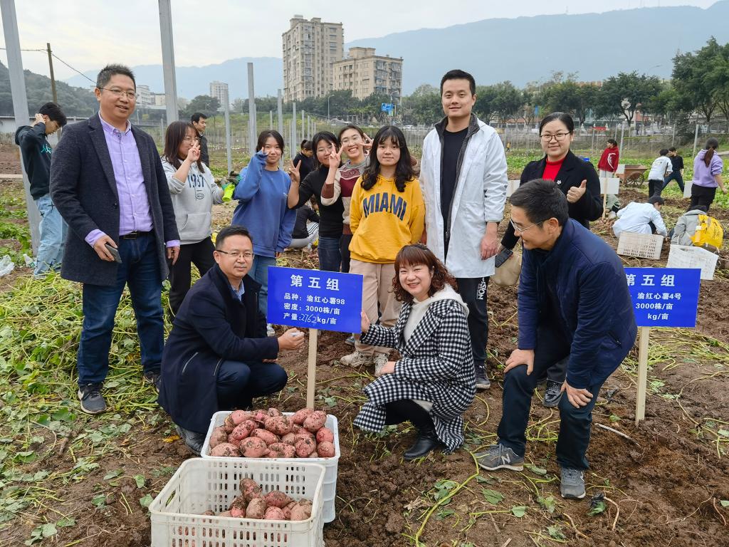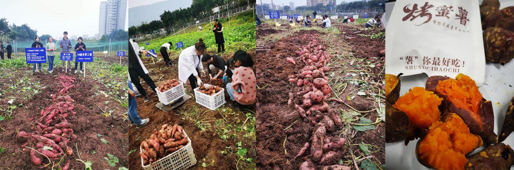 农学专业学生《作物生产实践》课程种植的甘薯喜获丰收。为分享学生专业实践教育与劳动教育的成果,2021年11月21日-22日,在学校教务处组织下开展“青春‘薯’农,劳动暖冬”主题活动,包括甘薯知识科普宣传、甘薯免费品鉴、专业课程实践教学与劳动教育成果展示。本次分享的主要劳动成果是学院2019级农学专业学生在《作物生产实践》课程中所收获的甘薯——渝红心薯98号、渝红心薯4号和渝紫香10号。这三个品种由薯类生物学与遗传育种重庆市重点实验室选育,其中渝红心薯98号、渝紫香10号入选全国“三峡杯”十大好吃薯。