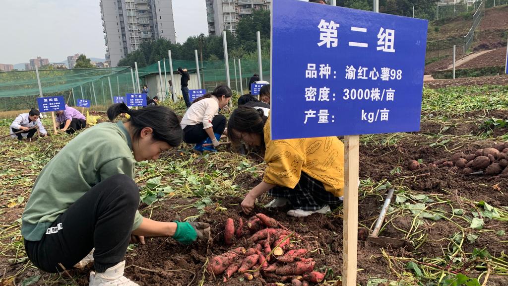 2019级隆平班学生严庆谈到实验课中最困难的事时回忆,“但看着这么多人吃自己种的红薯,通过答题来领取烤红薯,还是很开心的”。