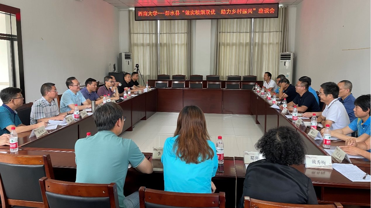 7月11日上午,志愿者服务队来到润溪烟站,与彭水县乡村振兴局、彭水县农技站、彭水县烟草公司、彭水县政府烟草办公室、彭水群英薯业科技研发中心一起就“做实粮烟双优,助力乡村振兴”主题进行座谈,就“粮烟双优”的实现路径和方法进行深入探讨。会议由乡村振兴局副局长何高阳主持,彭水县政协副主席张泽勇参加座谈。阳义健书记介绍了学院教职工志愿者近五年在彭水开展活动的情况。彭水县农技站陈述了当地不同农业产业的发展现状,彭水县烟草公司介绍了粮烟双优实施规划和已开展的工作,提出作为重庆甘薯和烟草第一大县,发展粮烟双优存在的技术瓶颈问题。随后到场专家重点从实施模式和作物习性特点角度,专业解析问题存在的结点,提出解决难题的方法。双方就具体技术环节的落地进行了深入研讨。最后吕典秋院长进行了技术总结,提出彭水方案。张泽勇副主席发表讲话,他感谢成人文学