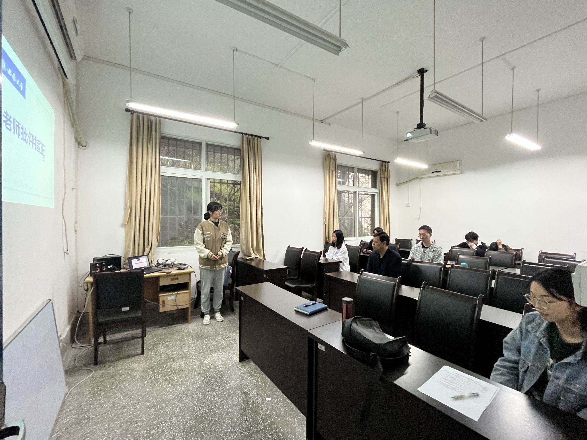 优异成绩离不开各个团队的认真准备,更离不开学院老师们的悉心指导。自2022年10月25日,学院召开西南大学第八届“含弘杯”学生课外学术科技作品竞赛作品推荐评审会选拔出优秀参赛作品后,各参赛团队就在老师的指导下,从内容结构、图表运用、数据调查样本量、论文撰写规范等多方面不断修改完善。为帮助参赛选手们提前进入比赛状态、熟悉流程、适应氛围, 3月15日,学院在棉研楼314教室为选手们组织了一次决赛答辩前的模拟答辩,并邀请了柴友荣研究员进行现场指导。模拟演练完全还原正式比赛中的“3+3”模式,即每位选手有三分钟的展示时间和三分钟的评委提问对答时间,柴友荣老师认真听取了每位同学的展演陈述,给予客观中肯的评价,并有针对性的提出改进建议。选手们通过赛前模拟交,流学习,积累经验,坚定信心。