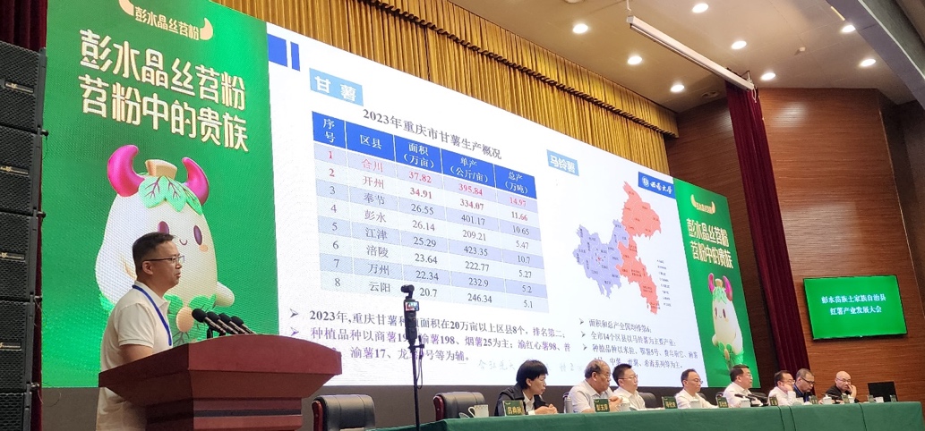 重庆是我国重要的马铃薯、甘薯产区,薯类作物常年种植面积达1000余万亩,在农业经济发展方面占据重要地位。为进一步推动重庆薯类产业发展,助力打造重庆特色品牌, 2024516日,由国家甘薯产业技术研发中心和彭水苗族土家族自治县人民政府共同主办的彭水苗族土家族自治县红薯产业发展大会于重庆彭水顺利召开。重庆市薯类产业技术体系创新团队首席吕典秋教授应邀出席大会并作题为提升创新能力 更好支撑重庆薯类产业发展的主旨报告。