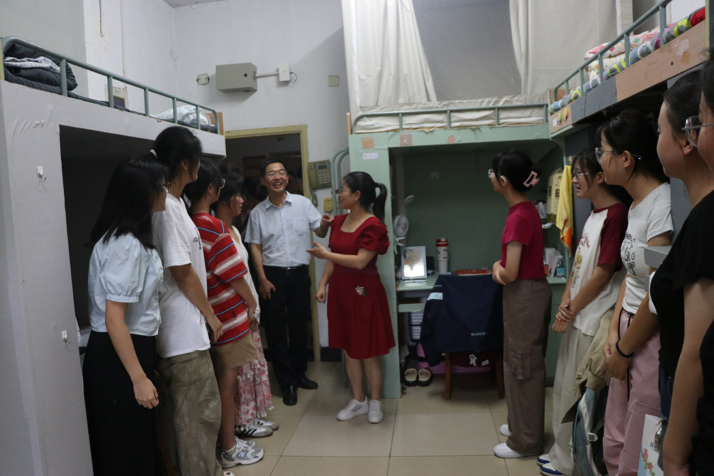 为进一步了解新生的思想状态和生活情况,加强师生交流,切实解决学生所遇到的实际问题,9月8日18:30,学院全体领导、辅导员及各班班主任前往新生宿舍,走访慰问2024级新生。老师们和同学们亲切交谈,询问入校后适应情况,帮助解决遇到的困难,解答同学们提出的疑问,并鼓励同学们要勇于挑战、树立理想、规划目标,健康、安全、充实地度过大学生活,叮嘱同学之间要相互帮助,积极调整自己的心态,尽快适应大学生活,以更加积极饱满的状态投入到新学期的学习生活中。
